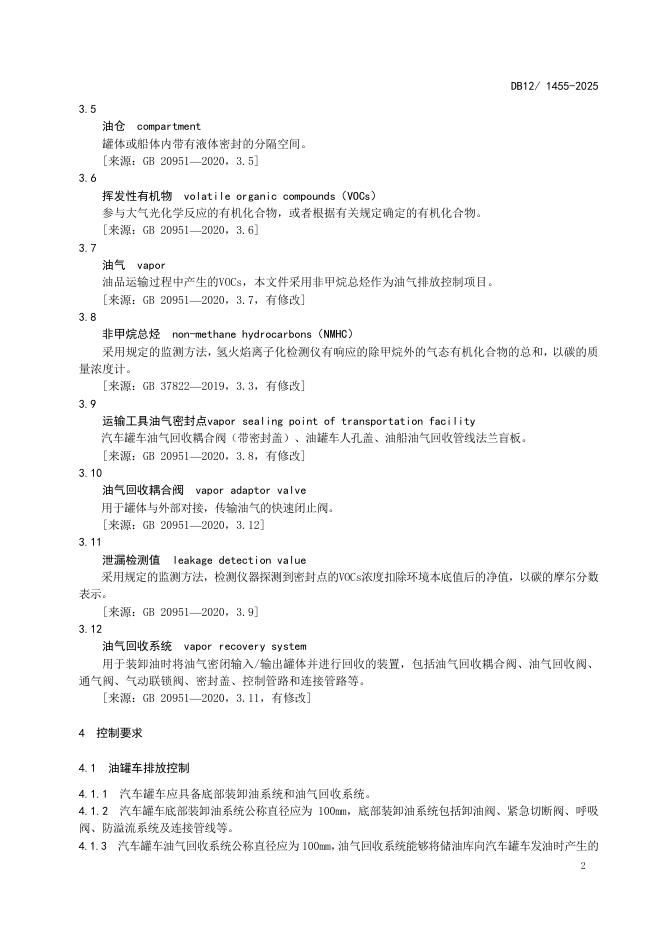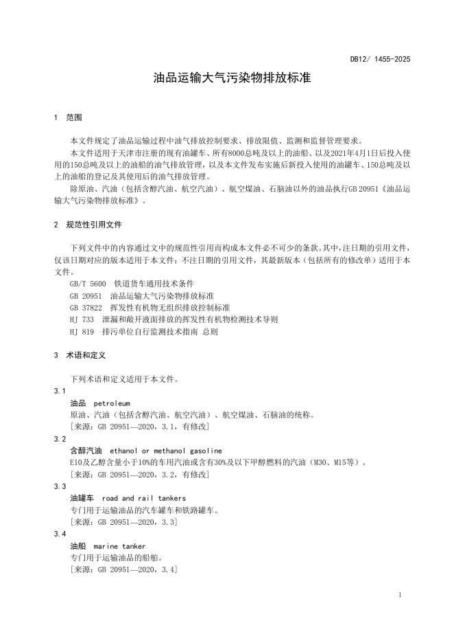 DB12/1455-2025 油品运输大气污染物排放标准