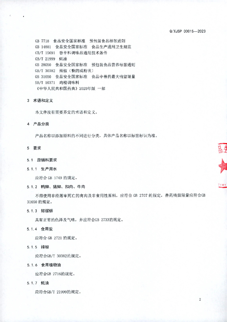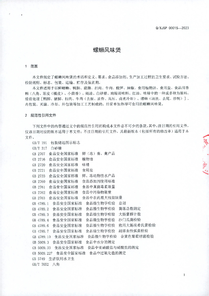 Q/XJSP 0001S-2023 螺蛳粉风味煲