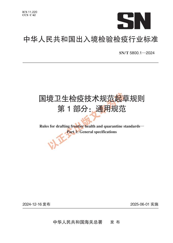 SN/T 5800.1-2024 国境卫生检疫技术规范起草规则 第1部分:通用规范