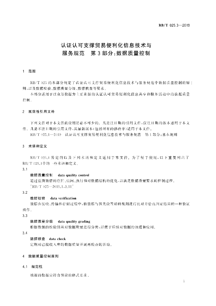 RB/T 025.3-2019 认证认可支撑贸易便利化信息技术与服务规范 第3部分:数据质量控制