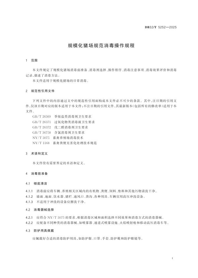 DB32/T 5252-2025 规模化猪场规范消毒操作规程