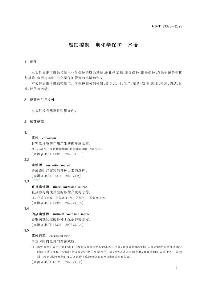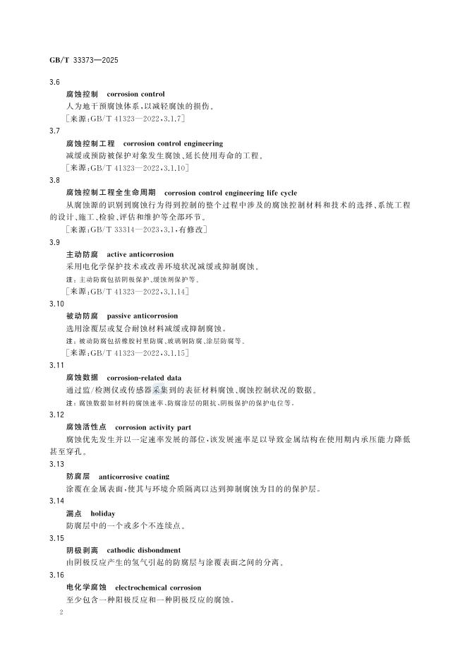 GB/T 33373-2025 腐蚀控制 电化学保护 术语