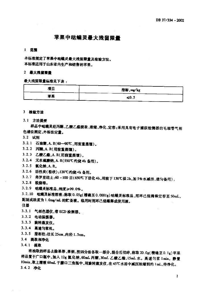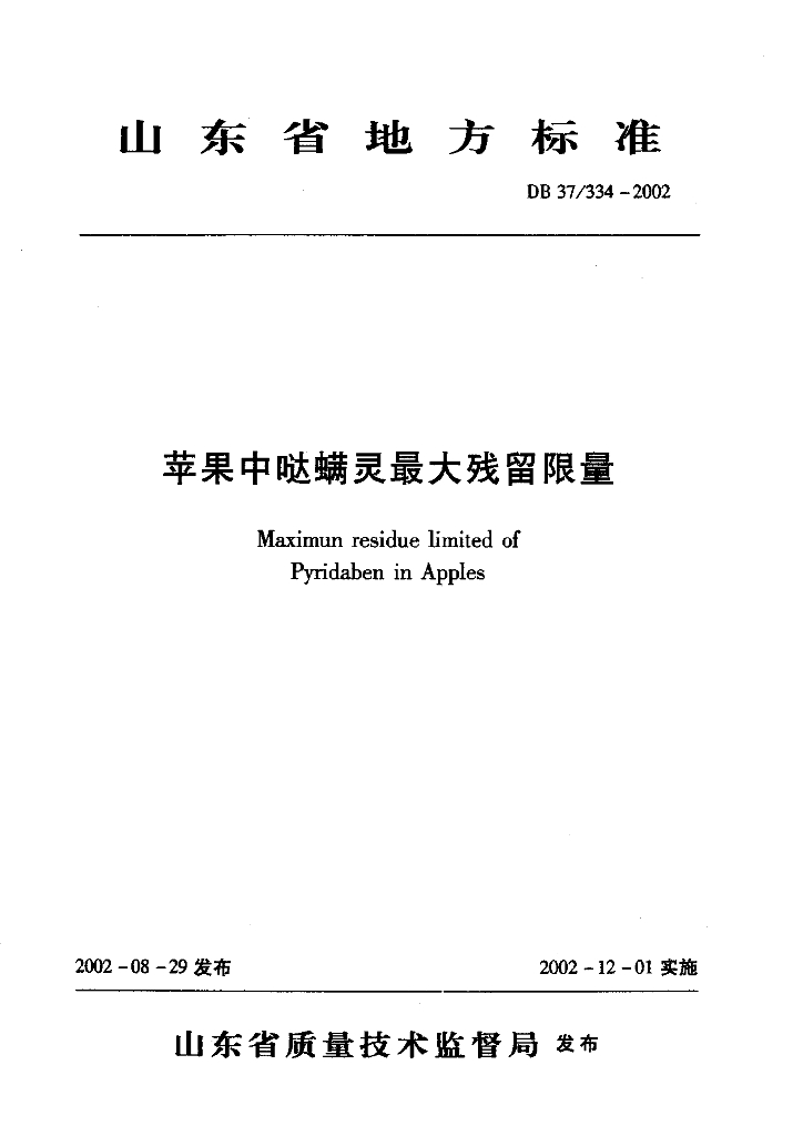 DB37/T 334-2002 苹果中哒螨灵最大残留限量