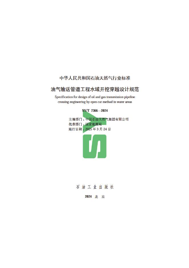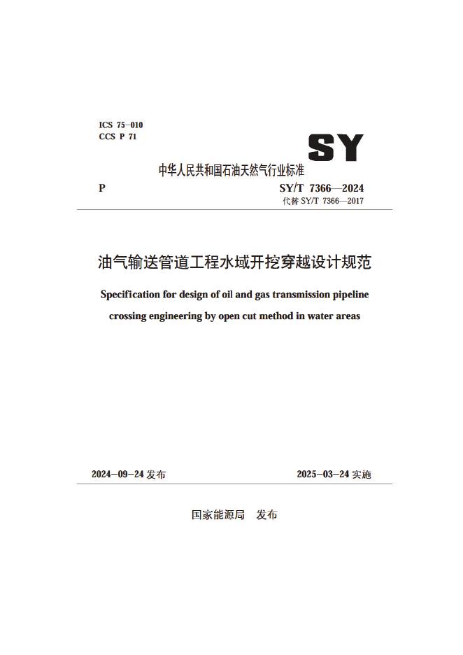 SY/T 7366-2024 油气输送管道工程水域开挖穿越设计规范(附条文说明)