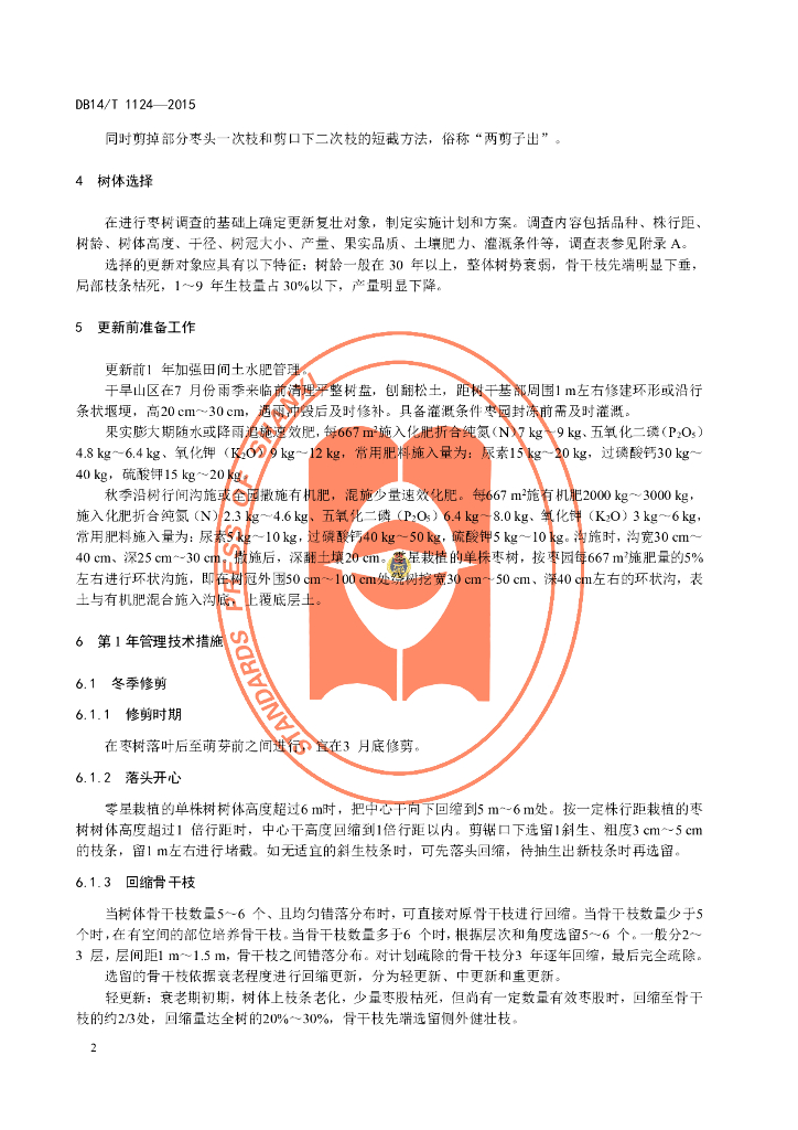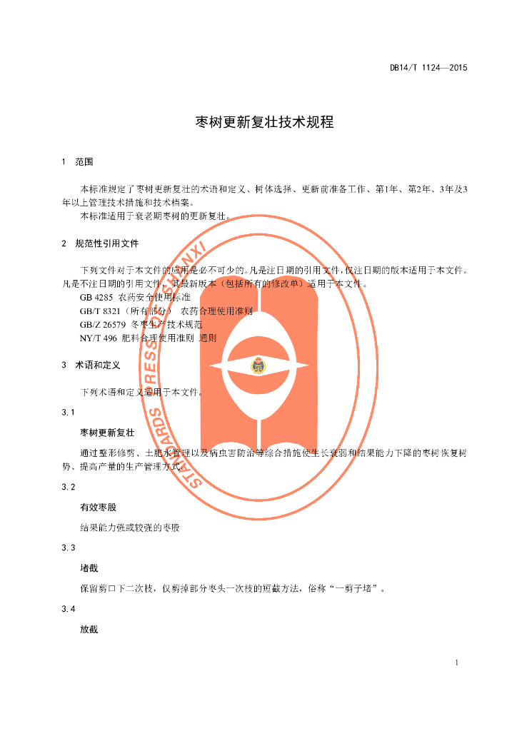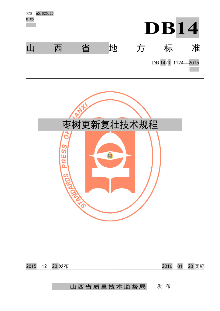 DB14/T 1124-2015 枣树更新复壮技术规程