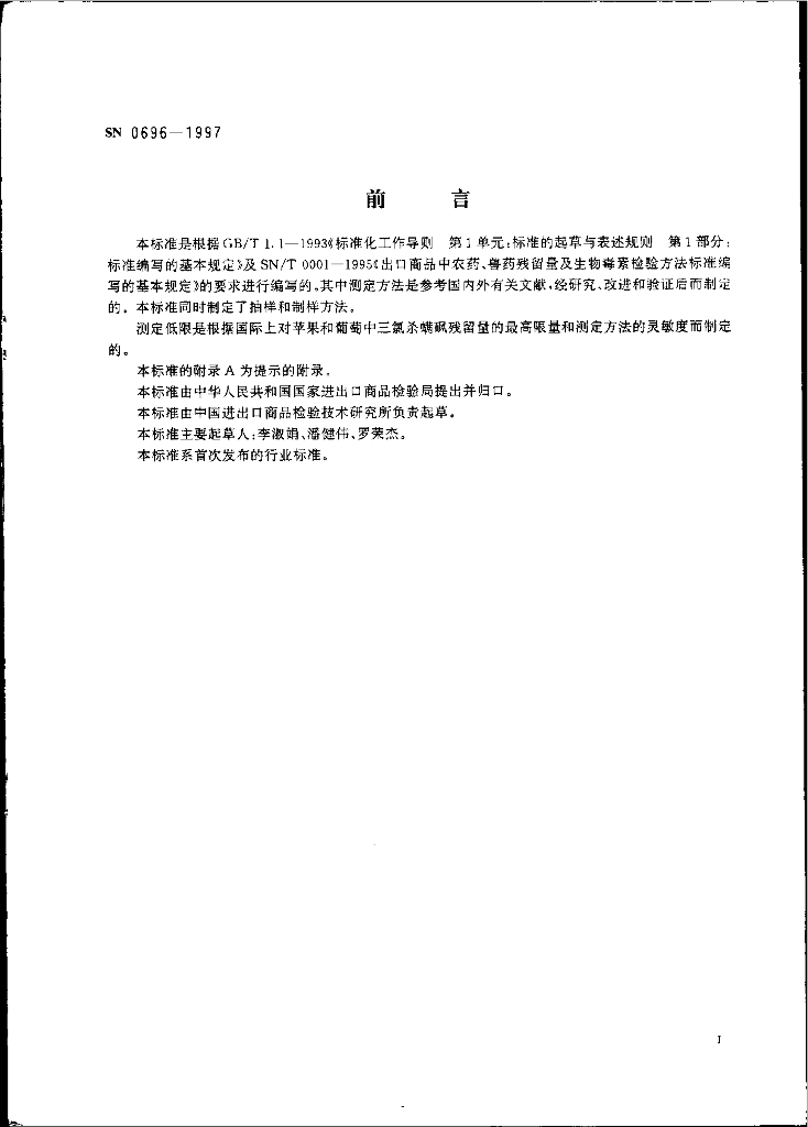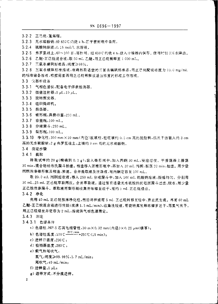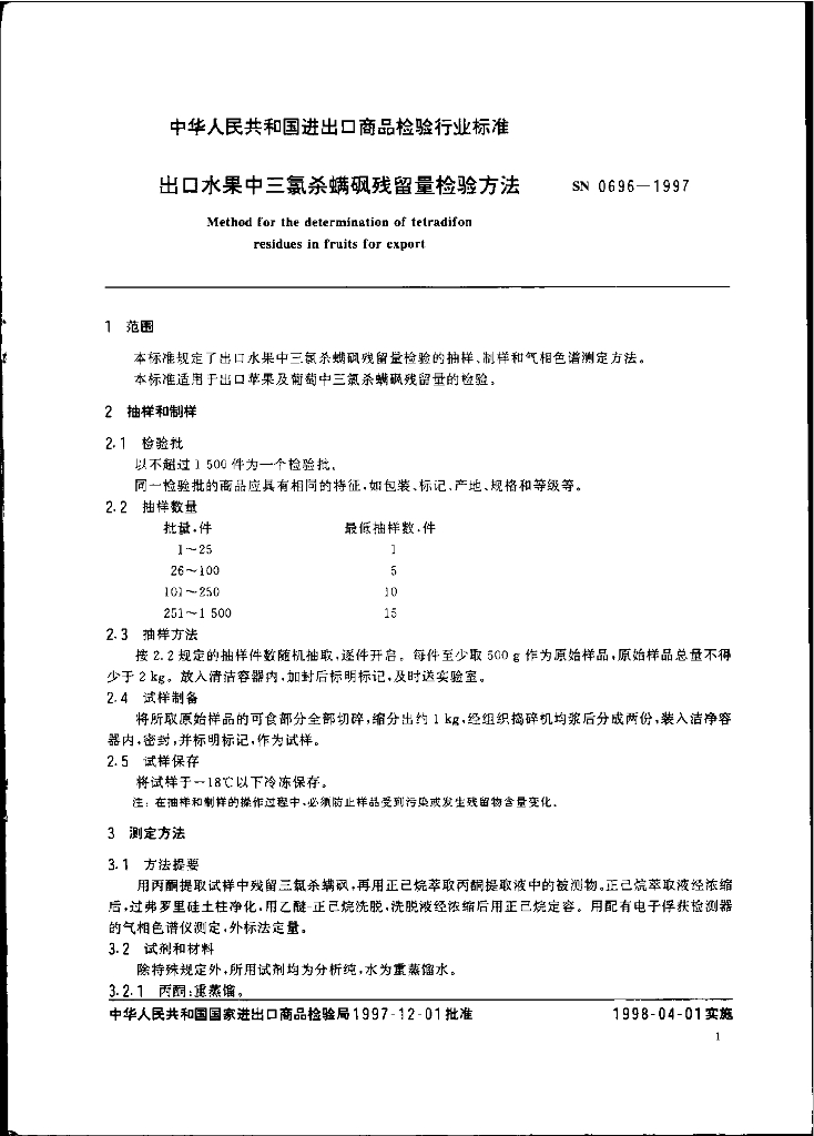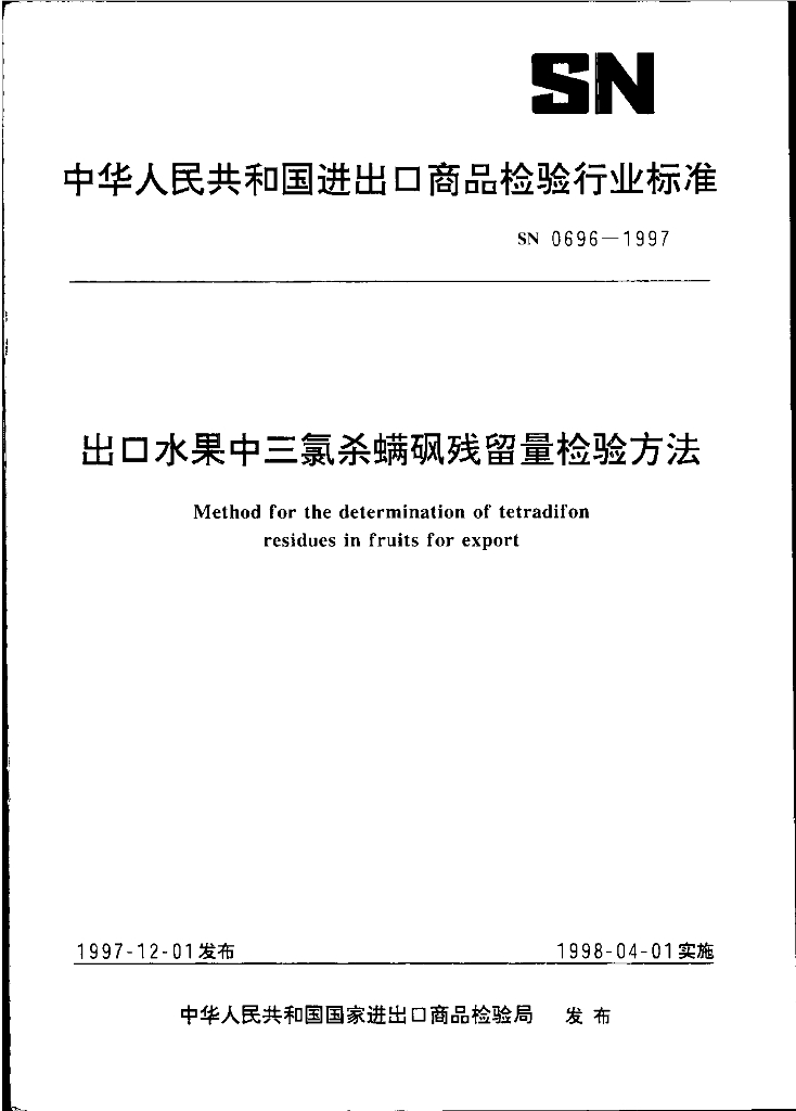 SN 0696-1997 出口水果中三氯杀螨砜残留量检验方法