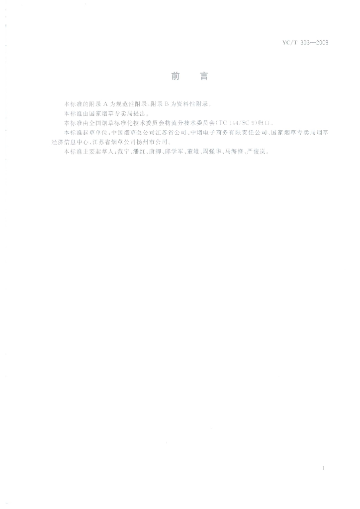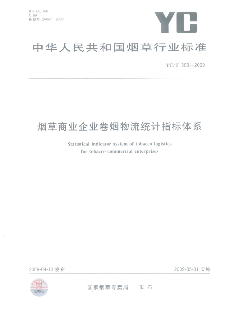 YC/T 303-2009 烟草商业企业卷烟物流统计指标体系