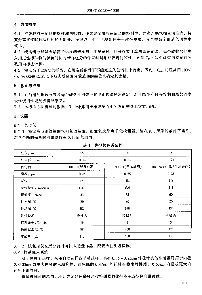 SH/T 0653-1998 石油蜡正构烷烃和非正构烷烃碳数分布测定法(气相色谱法)