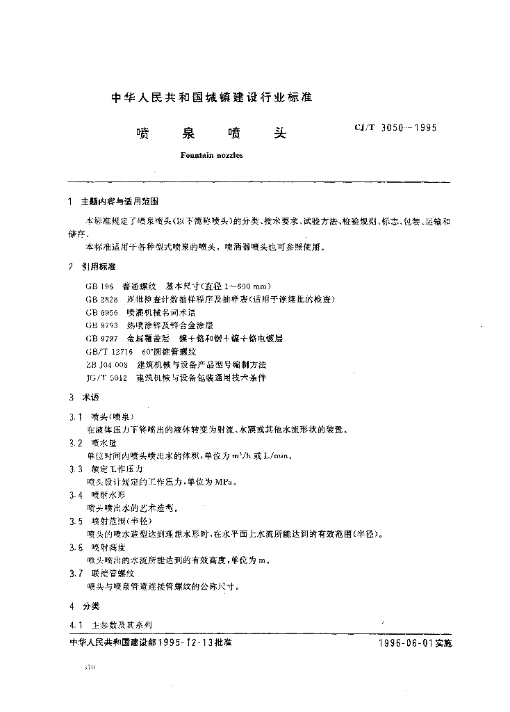 CJ/T 3050-1995 喷泉喷头