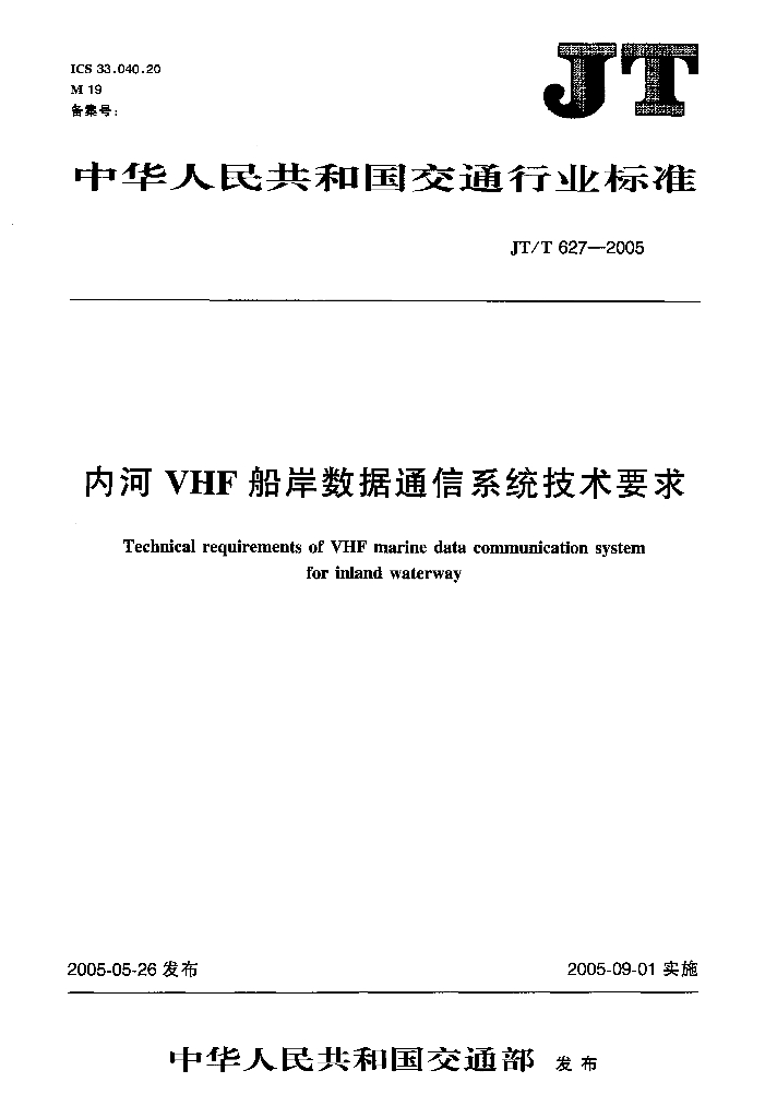 JT/T 627-2005 内河VHF船岸数据通信系统技术要求
