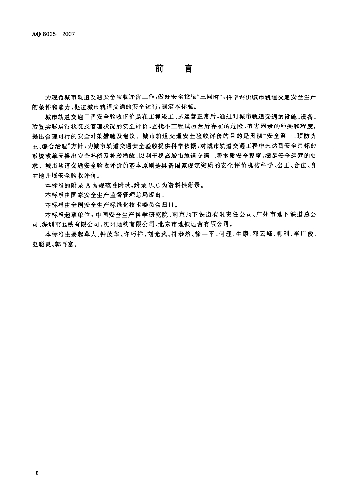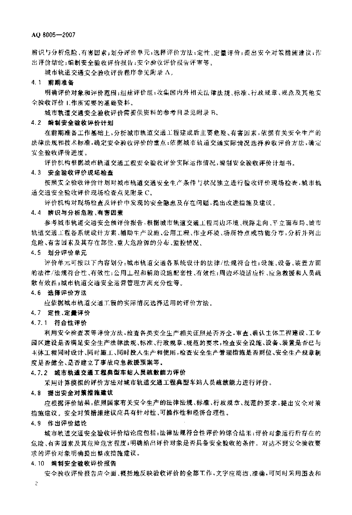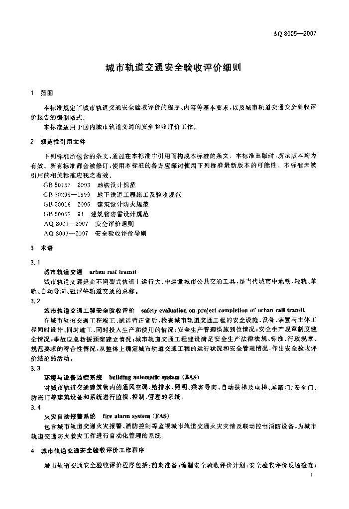 AQ 8005-2007 城市轨道交通安全验收评价细则
