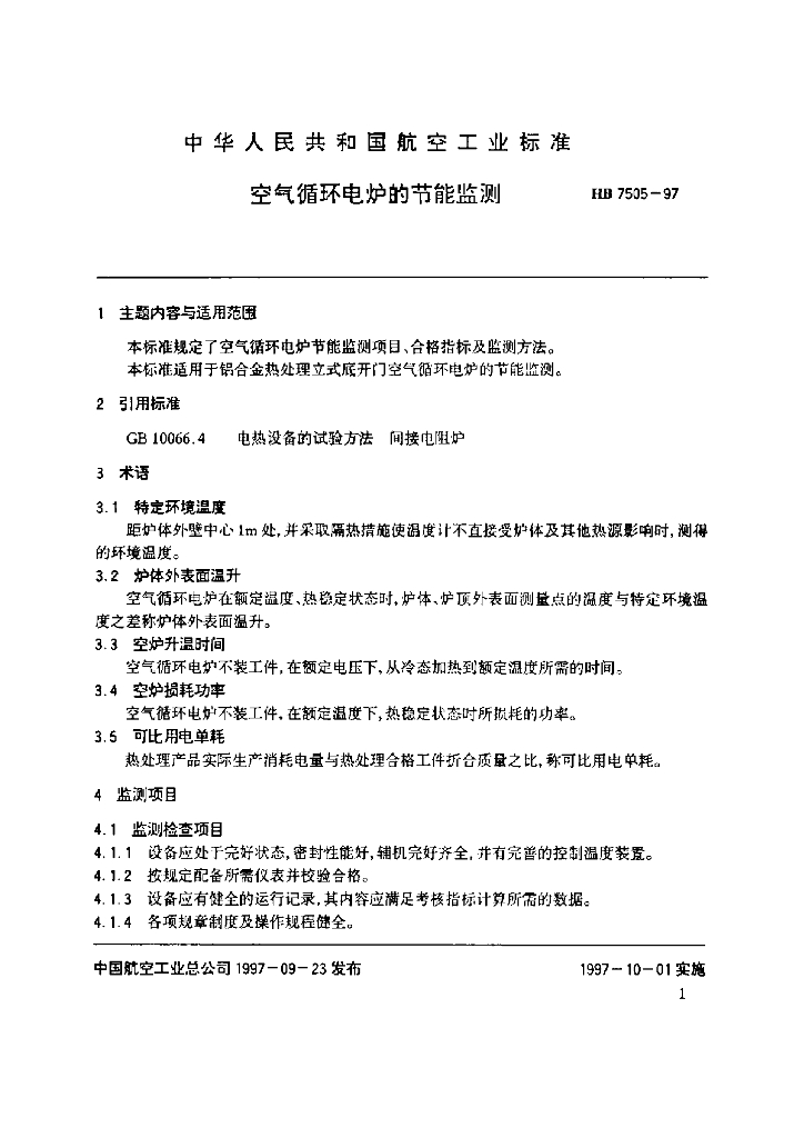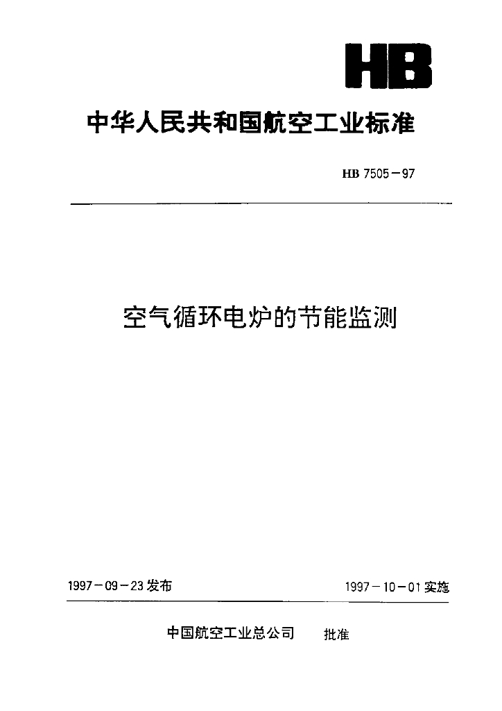 HB 7505-1997 空气循环电炉的节能监测