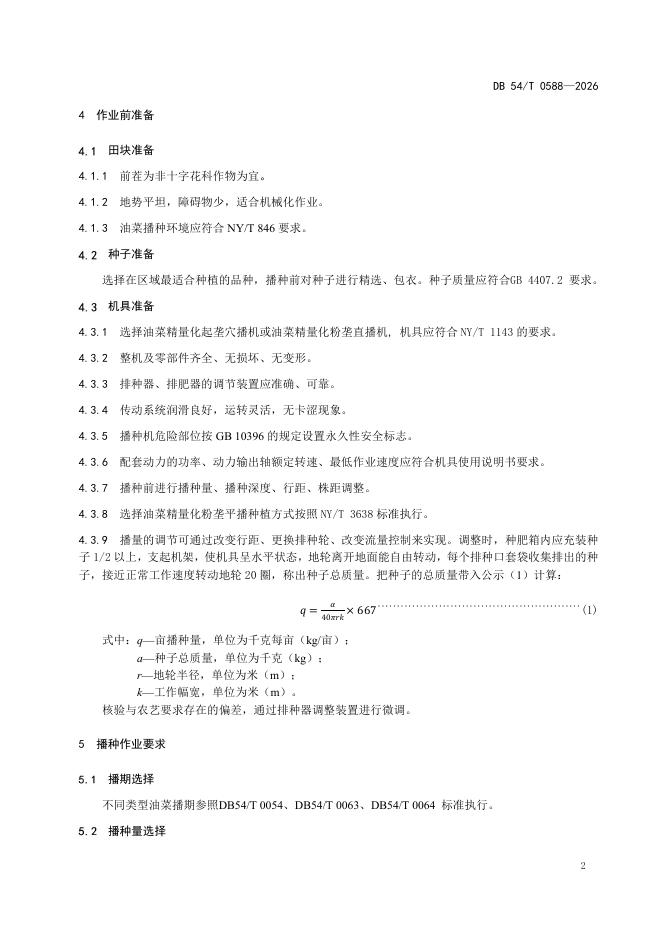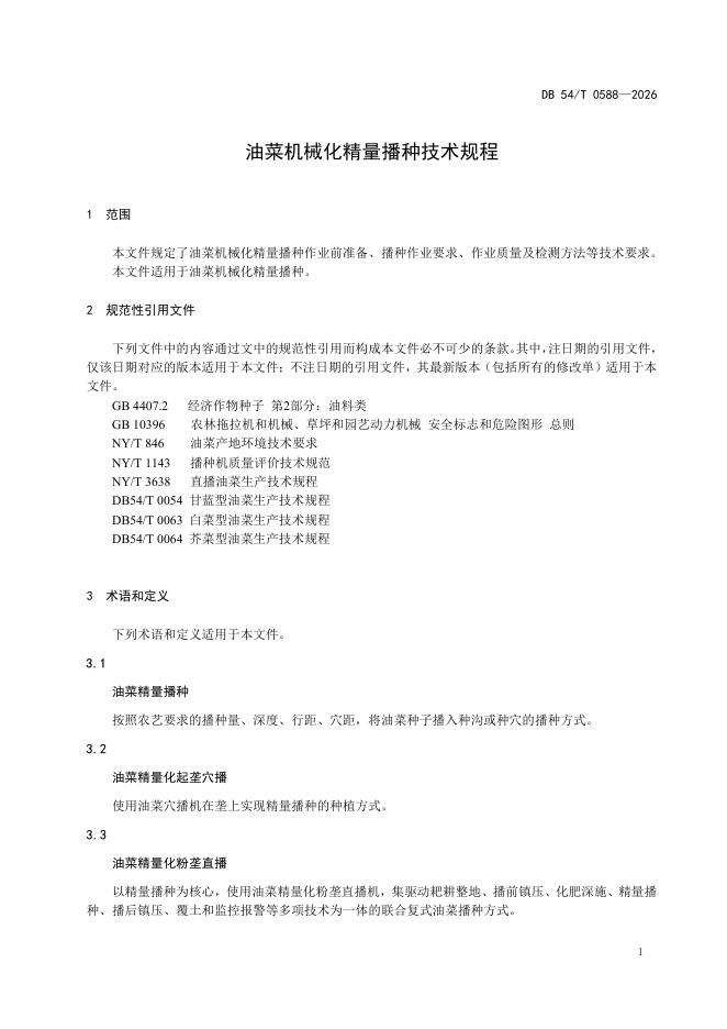 DB54/T 0588-2026 油菜机械化精量播种技术规程