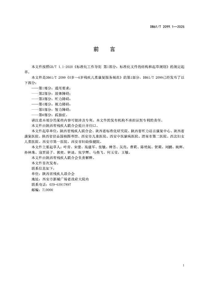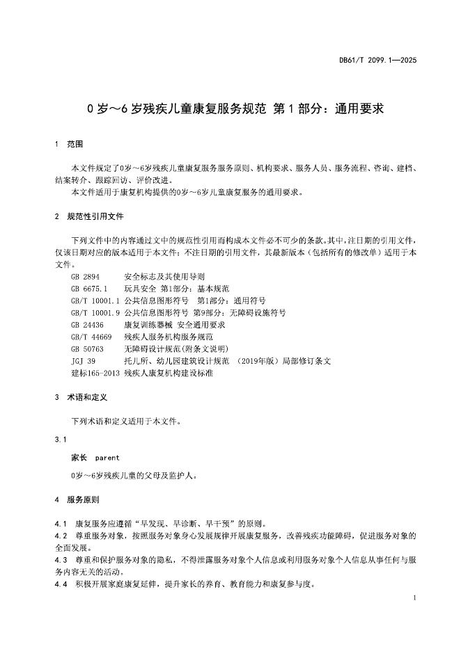 DB61/T 2099.1-2025 0岁~6岁残疾儿童康复服务规范 第1部分:通用要求