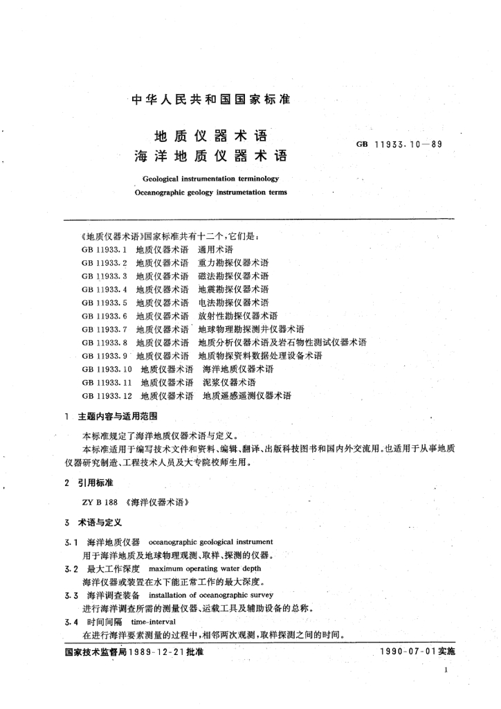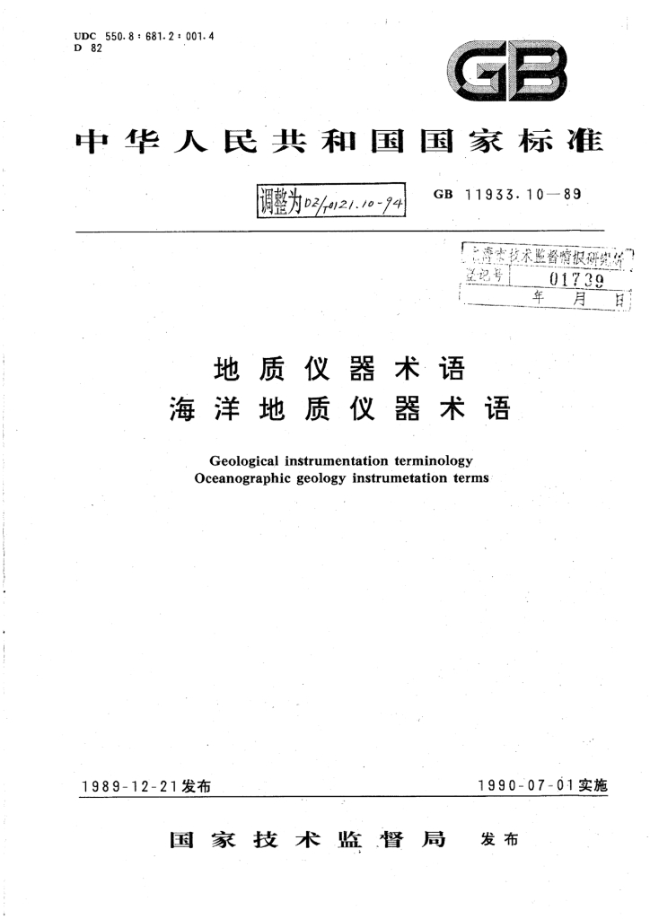 DZ/T 0121.10-1994 地质仪器术语 海洋地质仪器术语