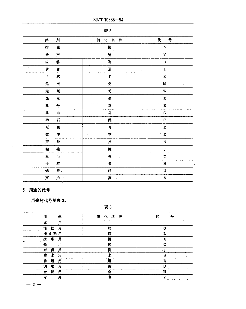SJ/T 10558-1994 电话机型号命名方法