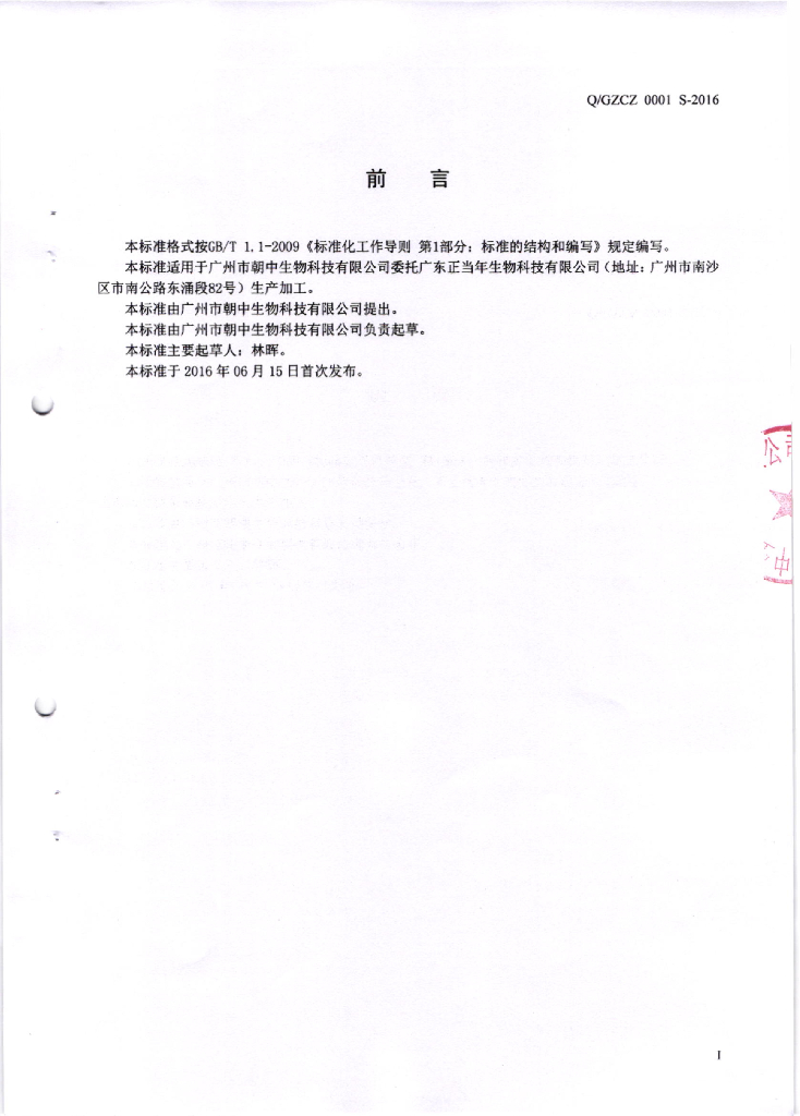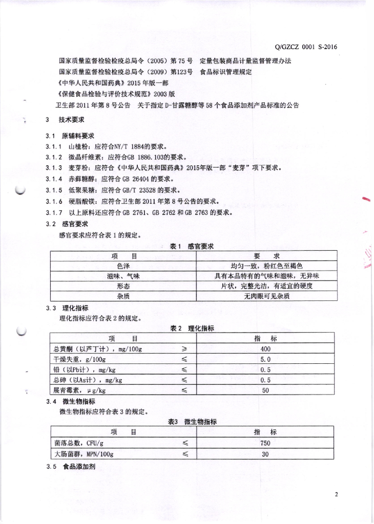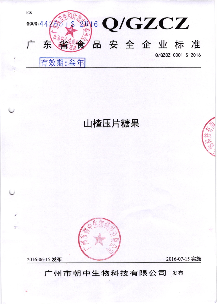 Q/GZCZ 0001S-2016 广州市朝中生物科技有限公司 山楂压片糖果