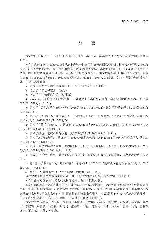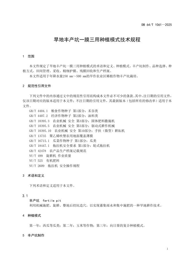 DB64/T 1061-2025 旱地丰产坑一膜三用种植模式技术规程