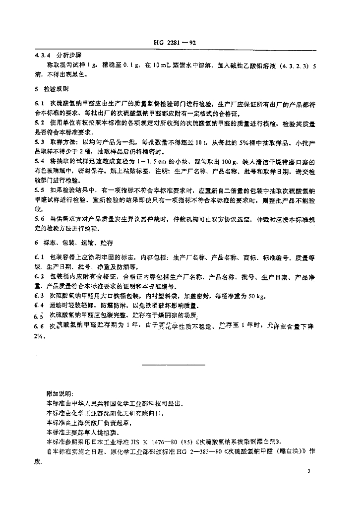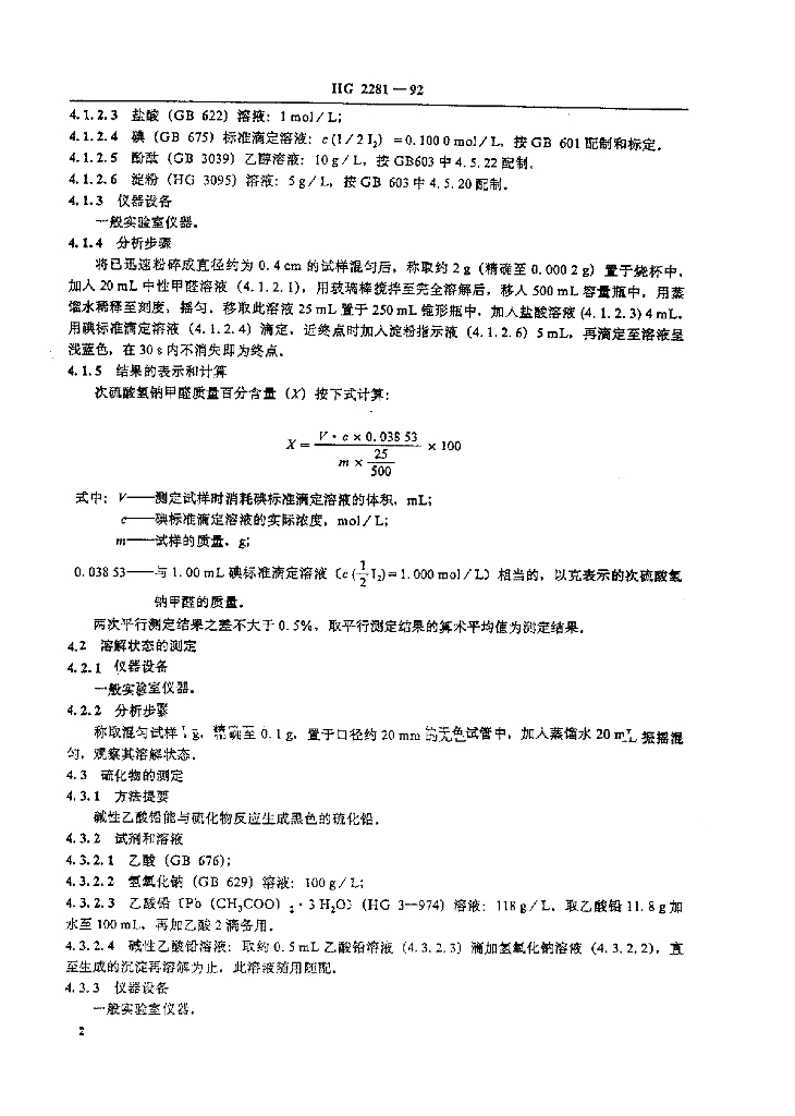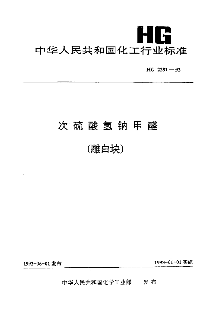 HG 2281-1992 次硫酸氢钠甲醛(雕白块)