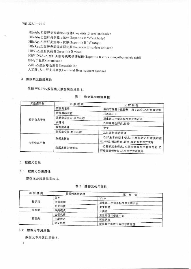 WS 372.1-2012 疾病管理基本数据集 第1部分:乙肝患者管理