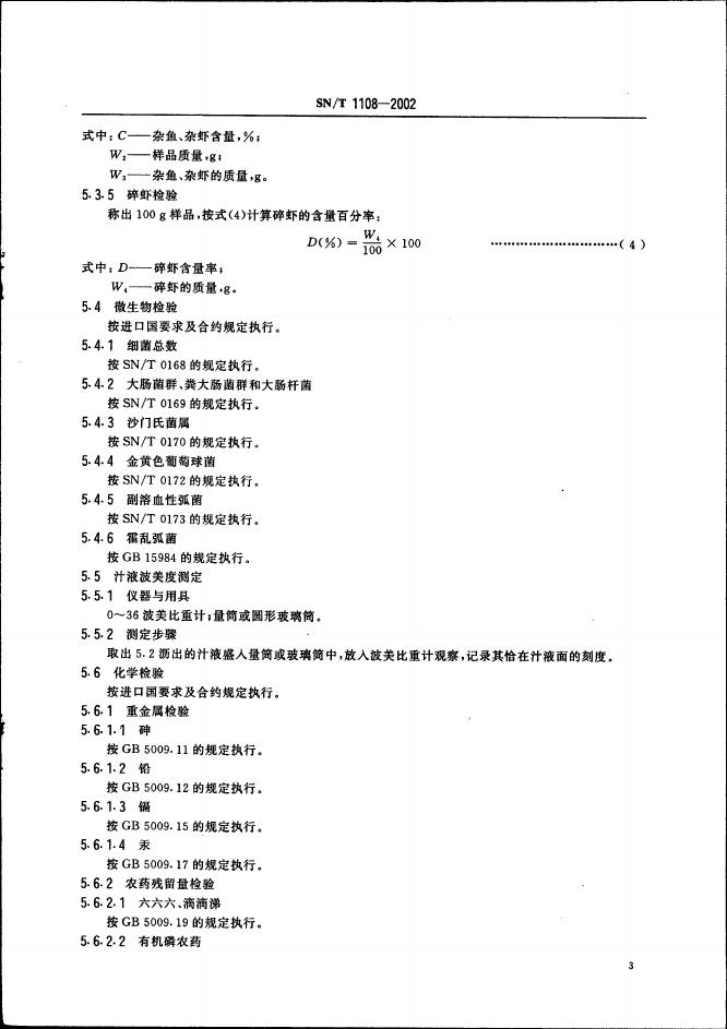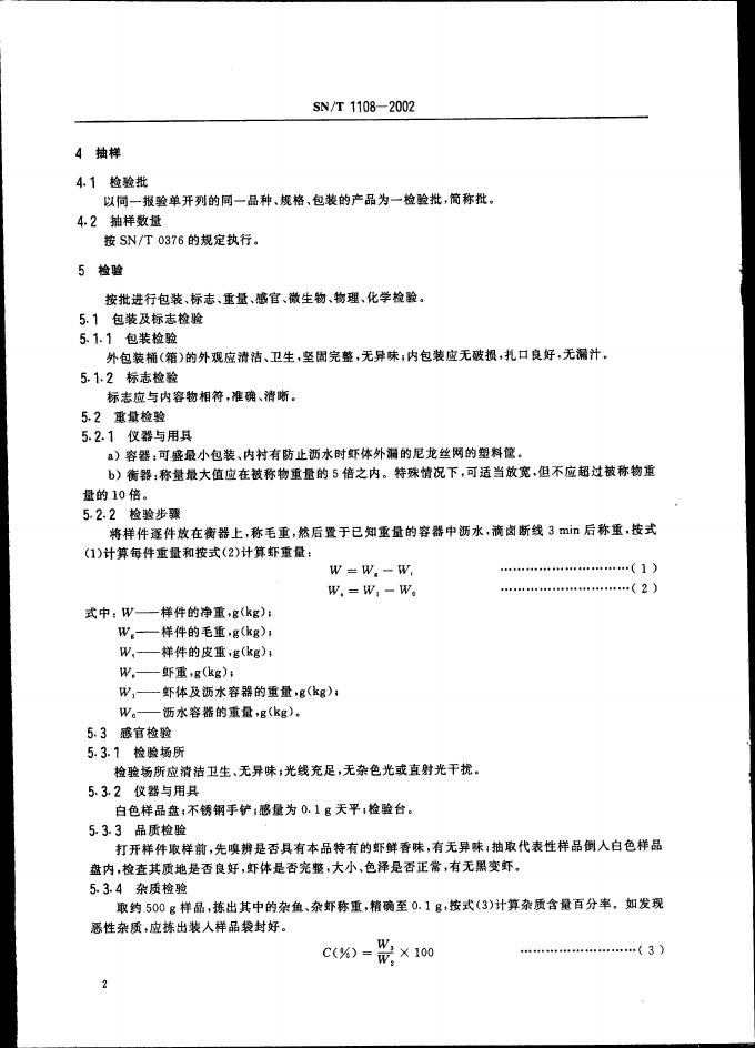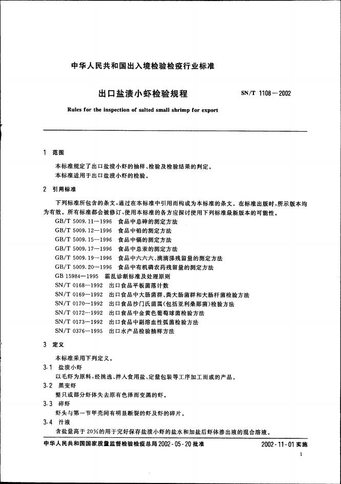 SN/T 1108-2002 出口盐渍小虾检验规程