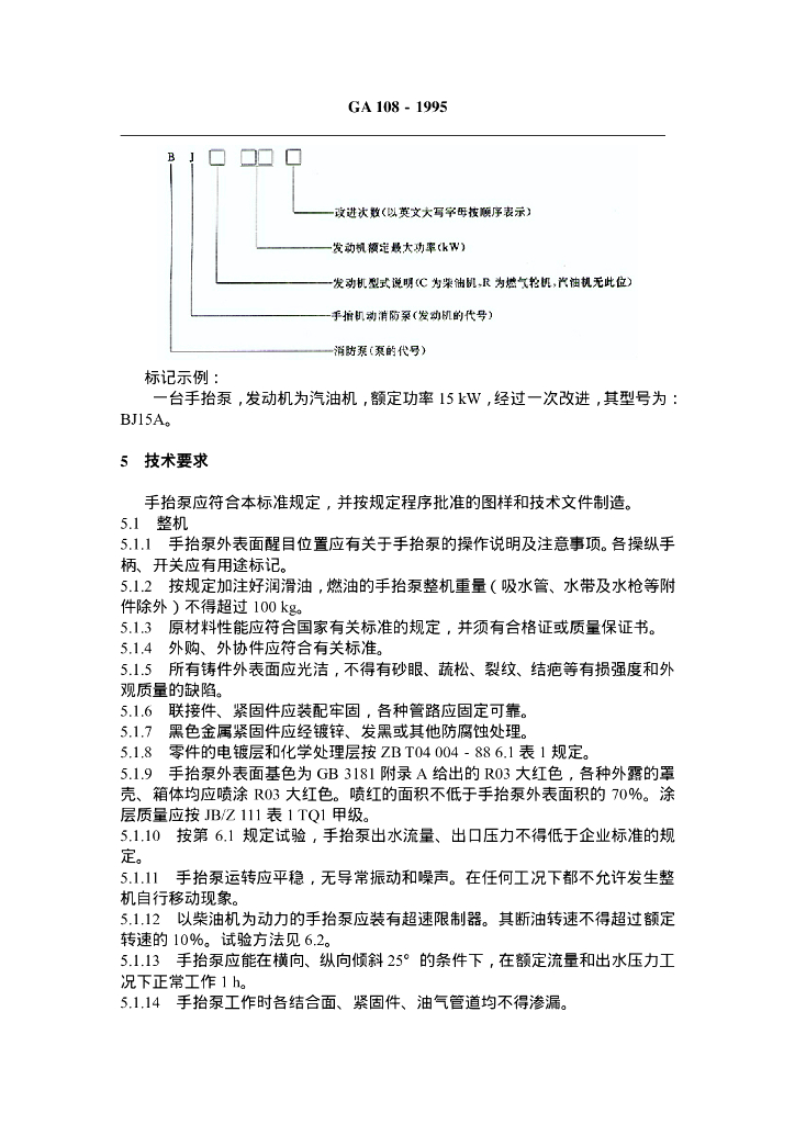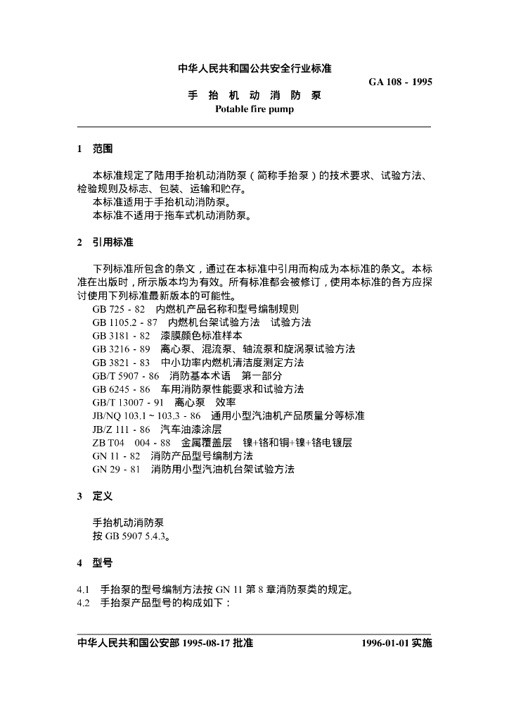 GA 108-1995 手抬机动消防泵