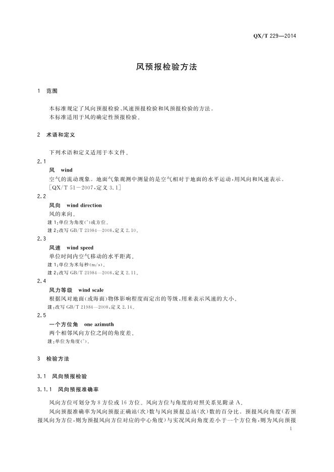 QX/T 229-2014 风预报检验方法