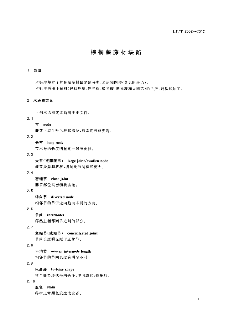 LY/T 2052-2012 棕榈藤藤材缺陷