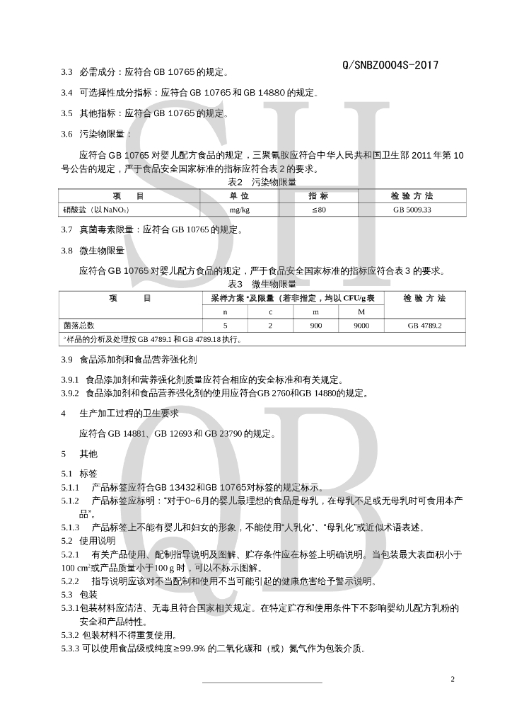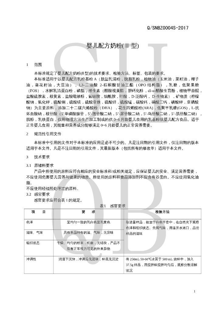 Q/SNBZ 0004S-2017 婴儿配方奶粉(Ⅱ型)