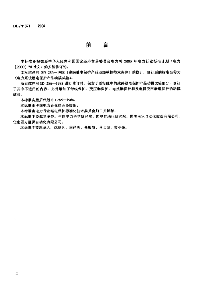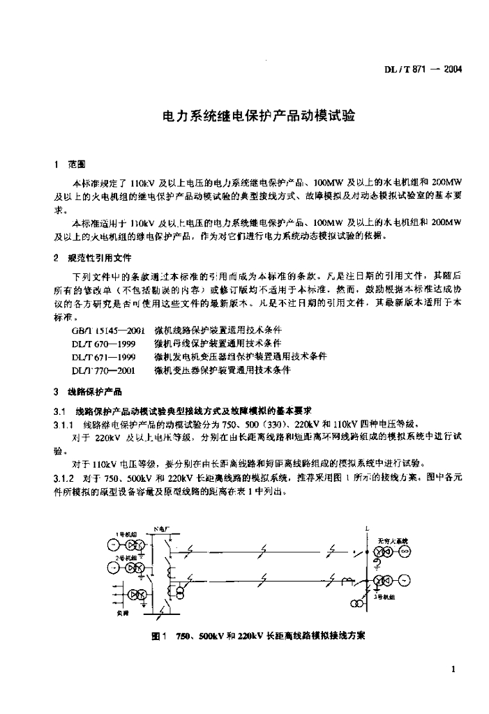 DL/T 871-2004 电力系统继电保护产品动模试验