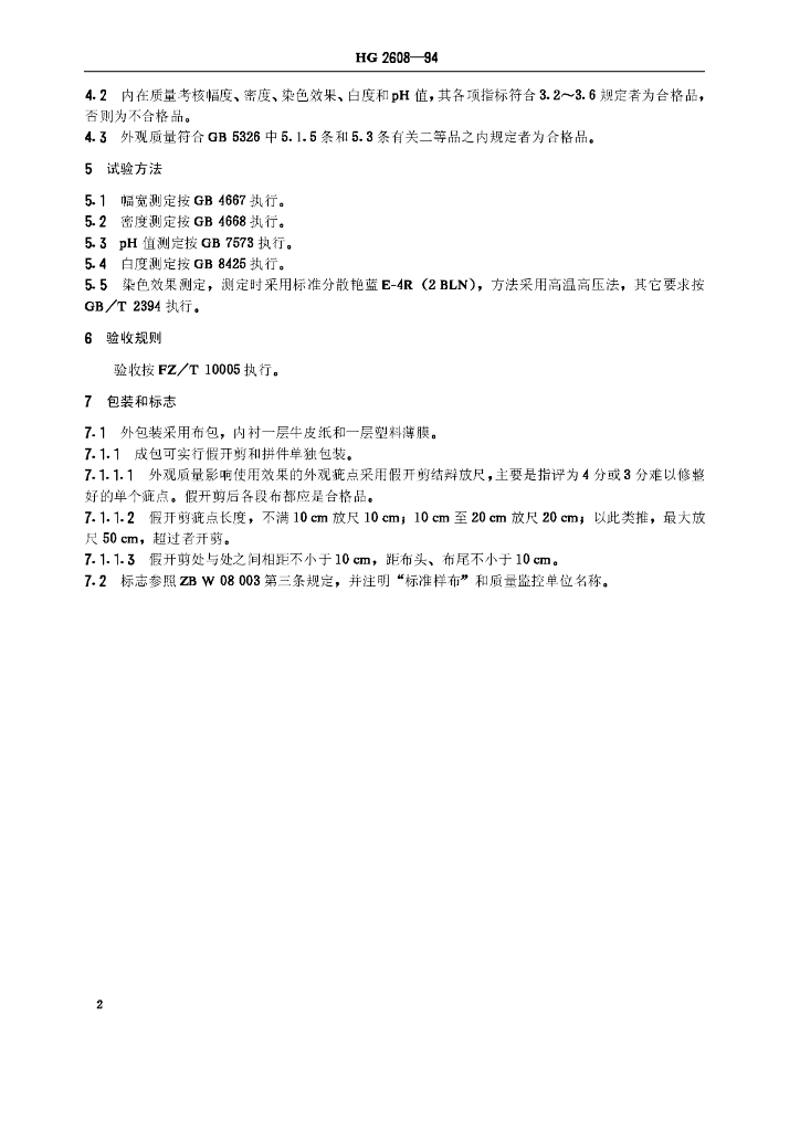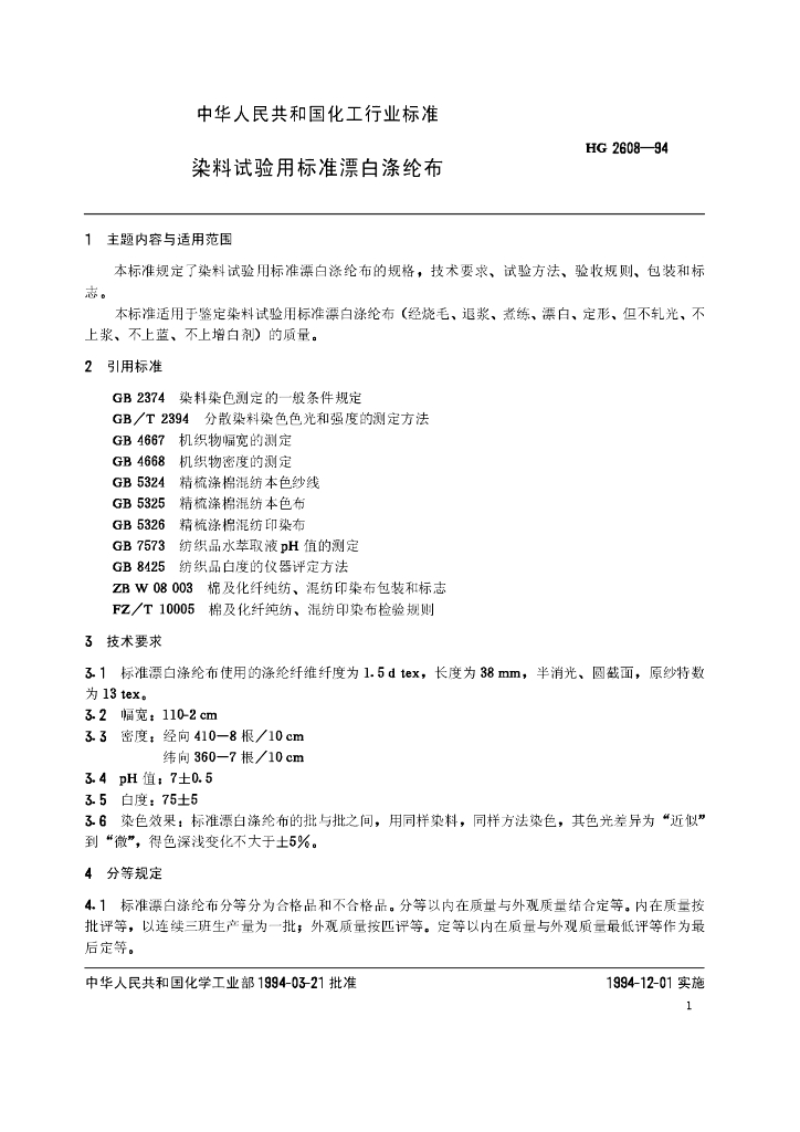 HG/T 2608-1994 染料试验用标准漂白涤纶布