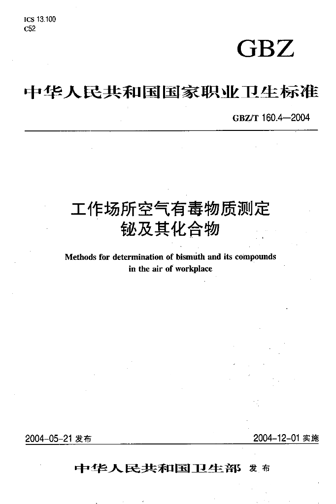 GBZ/T 160.4-2004 工作场所空气有毒物质测定 铋及其化合物