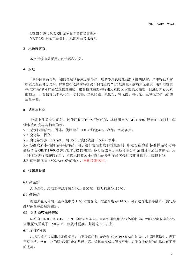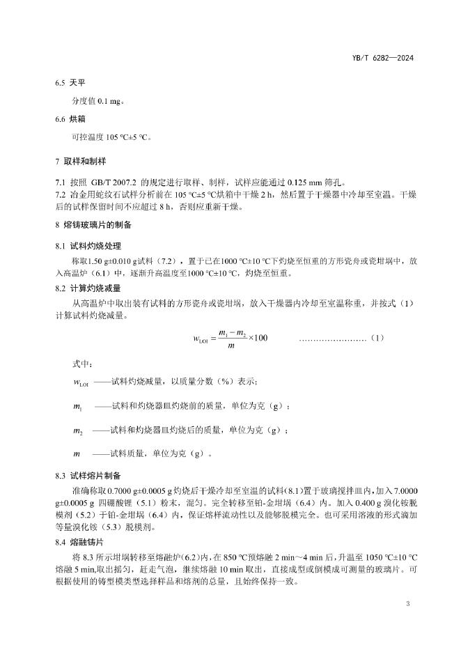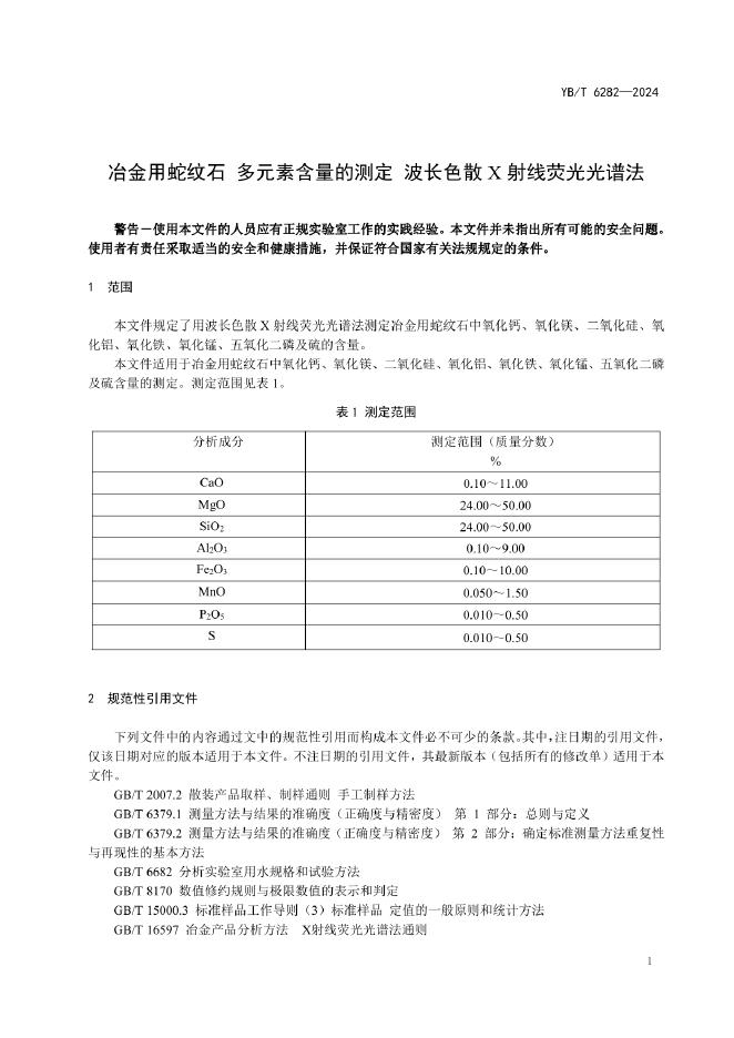YB/T 6282-2024 冶金用蛇纹石 多元素含量的测定 波长色散X射线荧光光谱法
