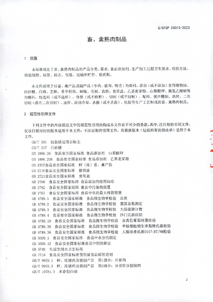 Q/GYSP 0001S-2023 畜、禽熟肉制品