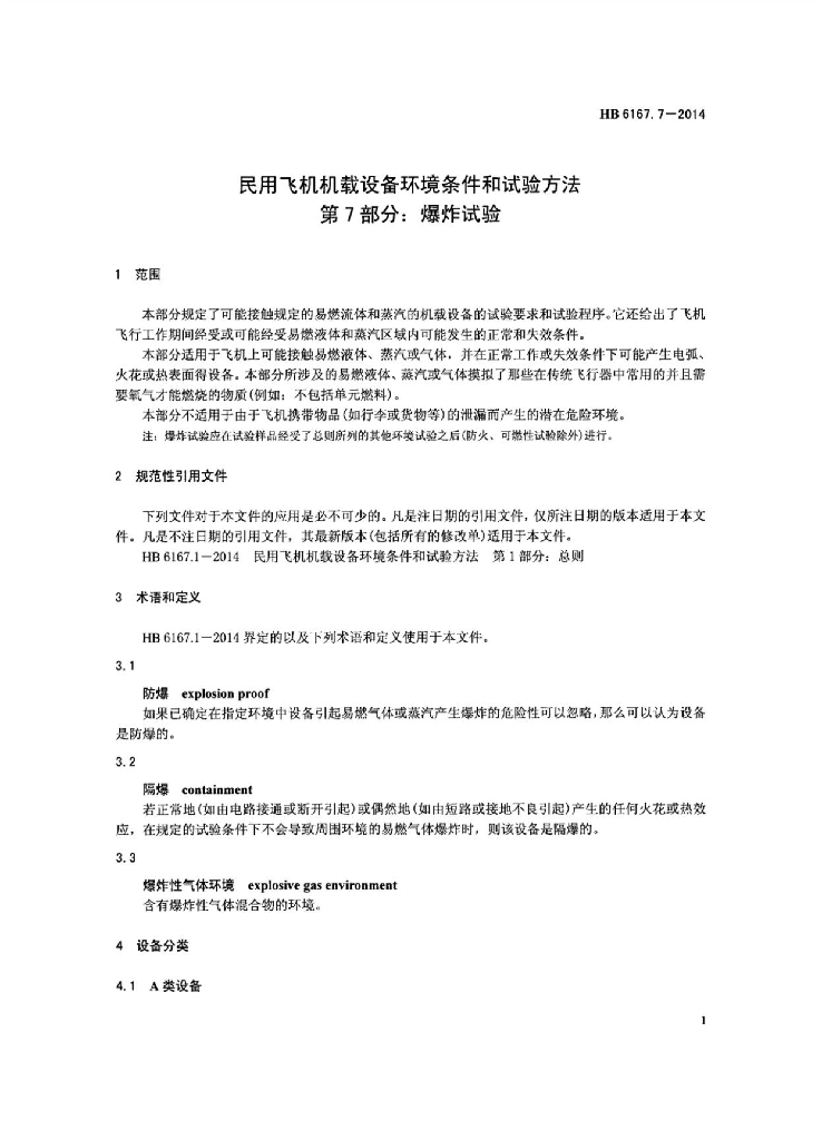 HB 6167.7-2014 民用飞机机载设备环境条件和试验方法 第7部分:爆炸试验