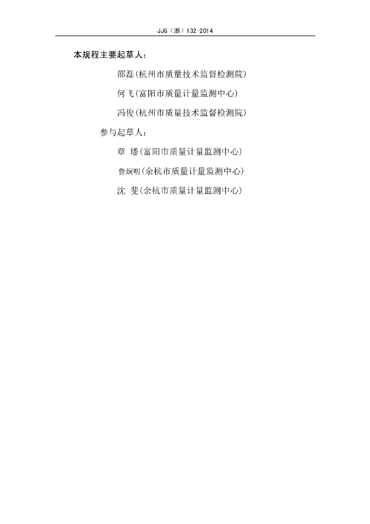邵磊(杭州市质量技术监督检测院)、何飞(富阳市质量计量监测中心)、冯俊(杭州市质量技术监督检测院)、章璠(富阳市质量计量监测中心)、鲁炯明(余杭市质量计量监测中心)、沈斐(余杭市质量计量监测中心)