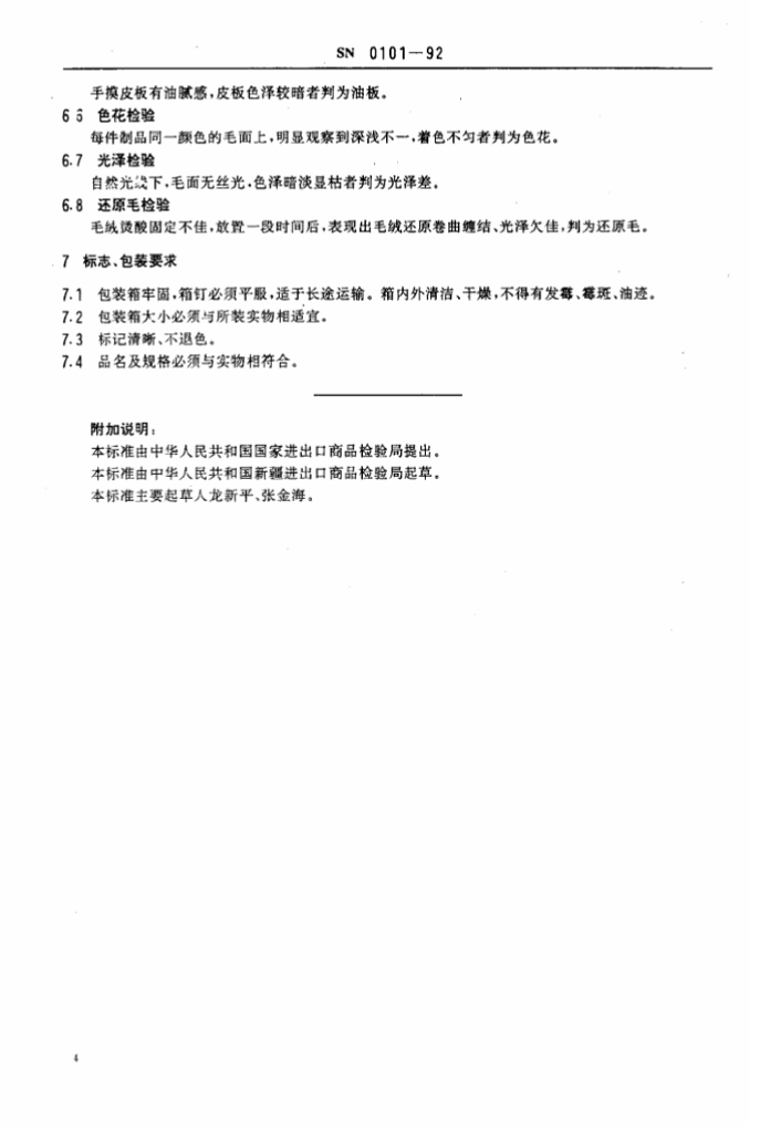 SN 0101-1992 出口羊剪绒皮制品检验规程