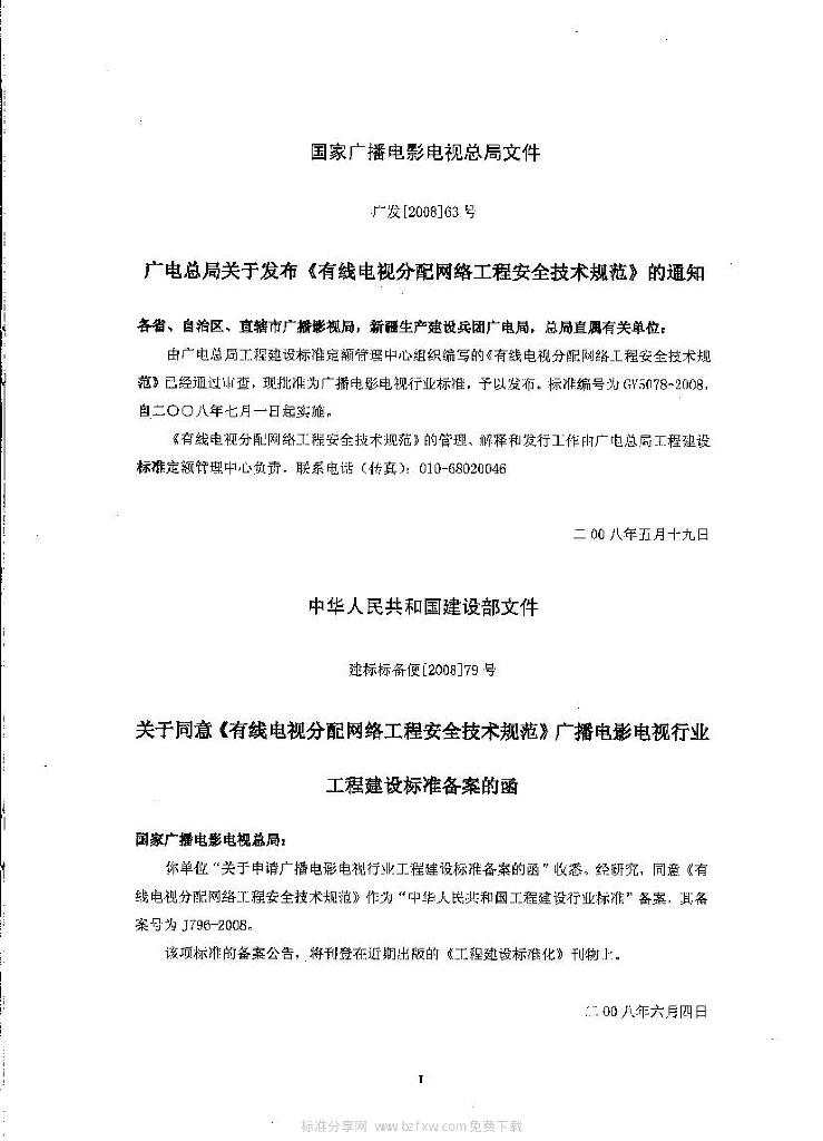 GY 5078-2008 有线电视分配网络工程安全技术规范