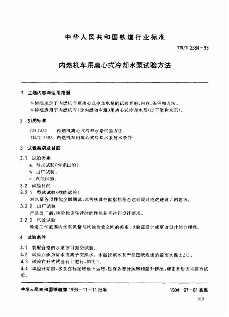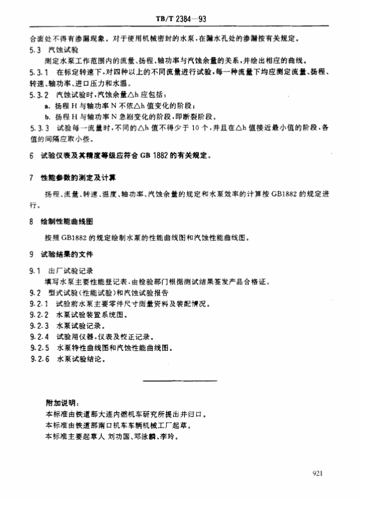 TB/T 2384-1993 内燃机车用离心式冷却水泵试验方法