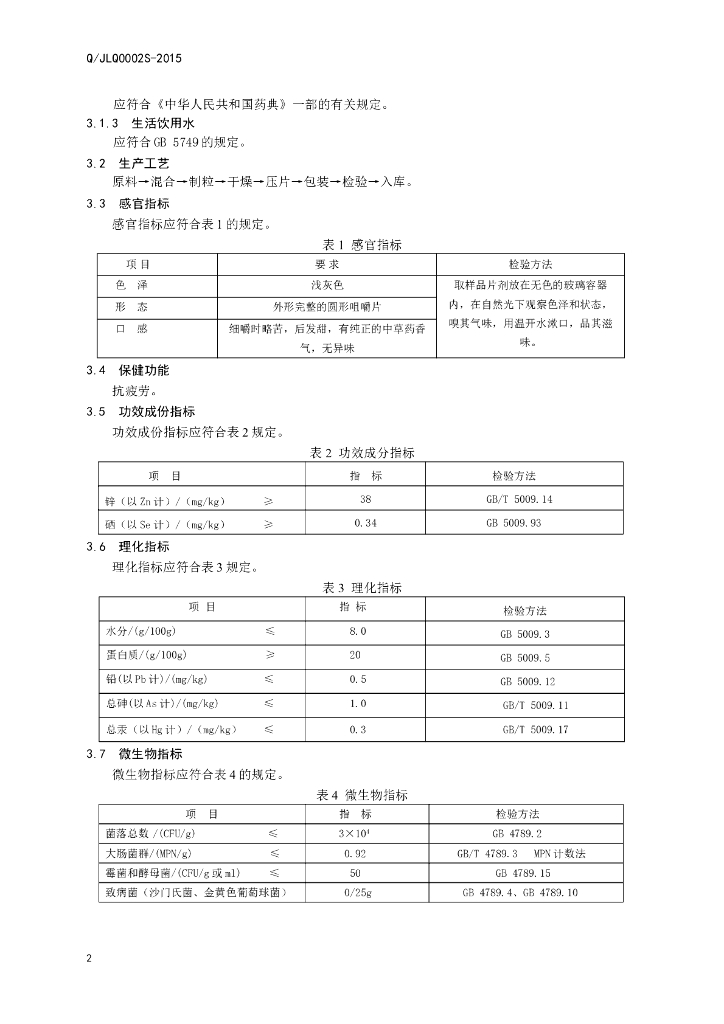 Q/JLQ 0002S-2015 济南鲁强医药科技有限公司 保健食品 鲁强牌益身宝片