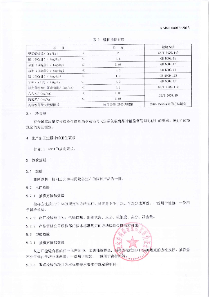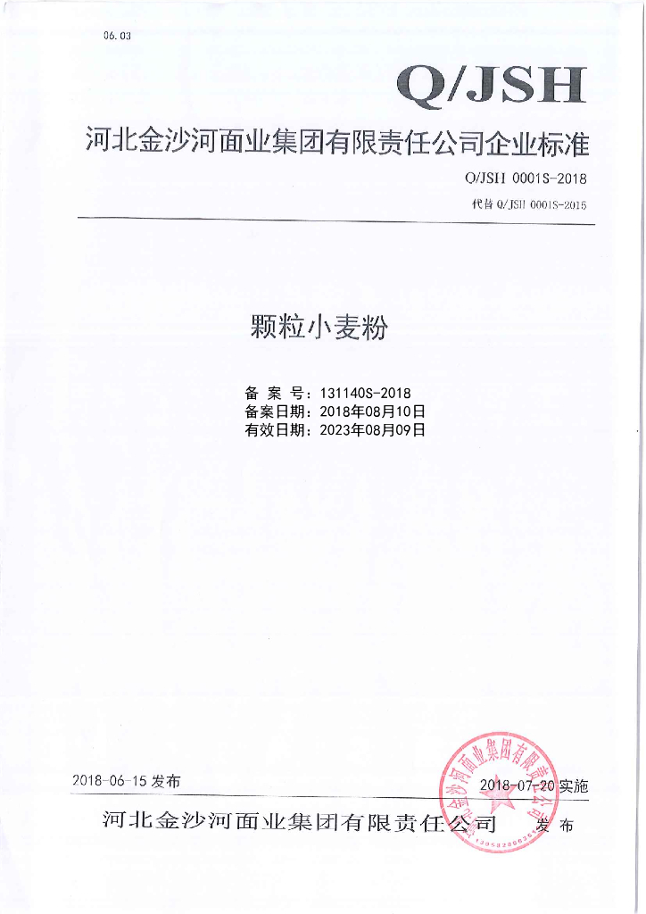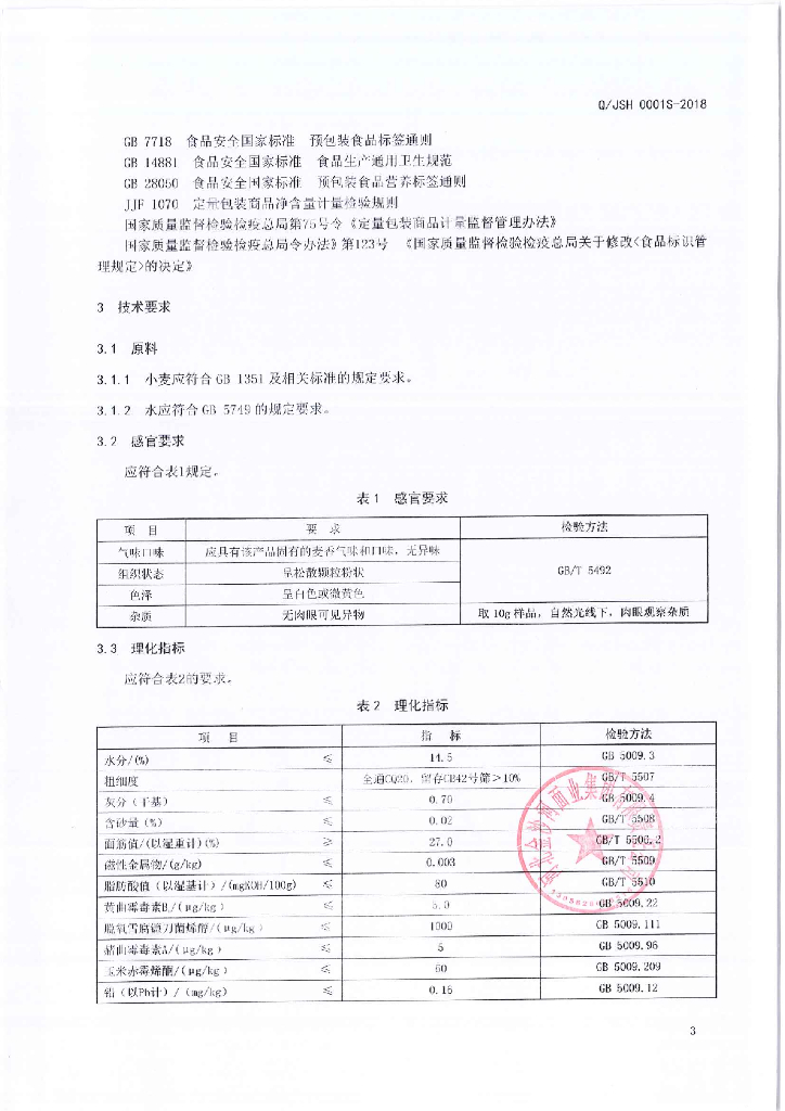 Q/JSH 0001S-2018 颗粒小麦粉
