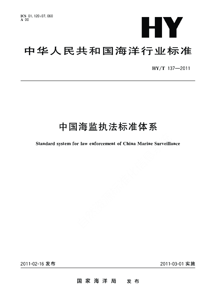 HY/T 137-2011 中国海监执法标准体系