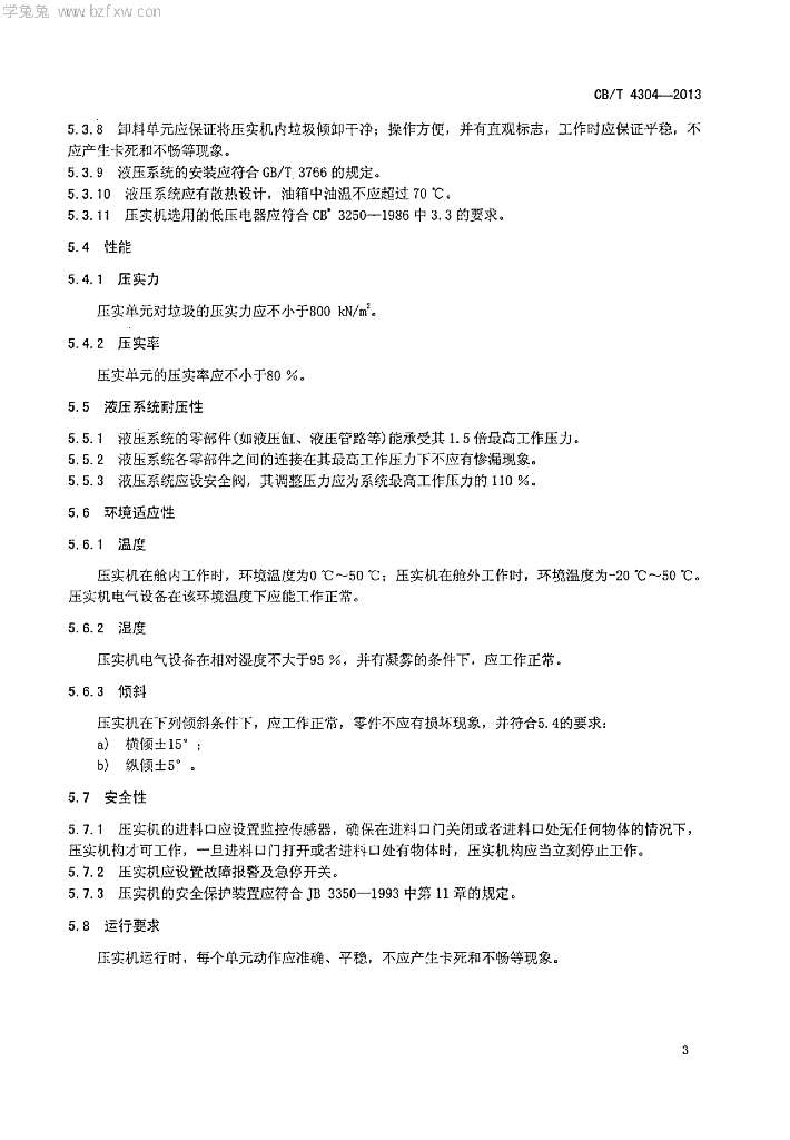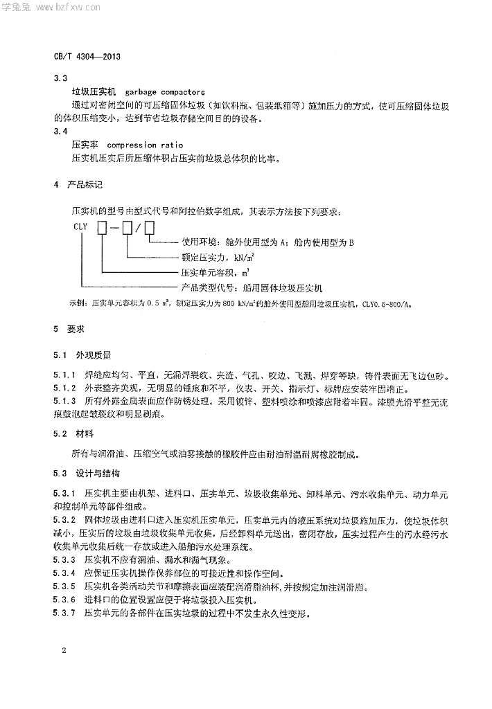CB/T 4304-2013 船用固体垃圾压实机