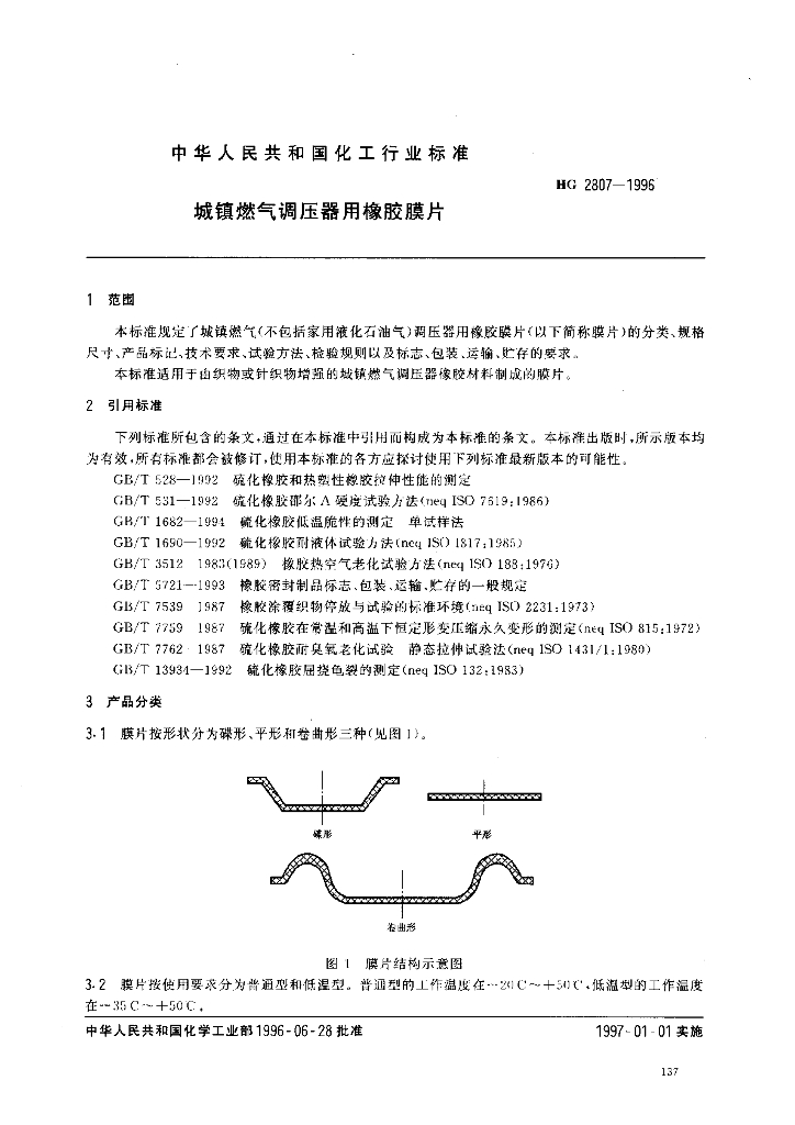 HG 2807-1996 城镇燃气调压器用橡胶膜片