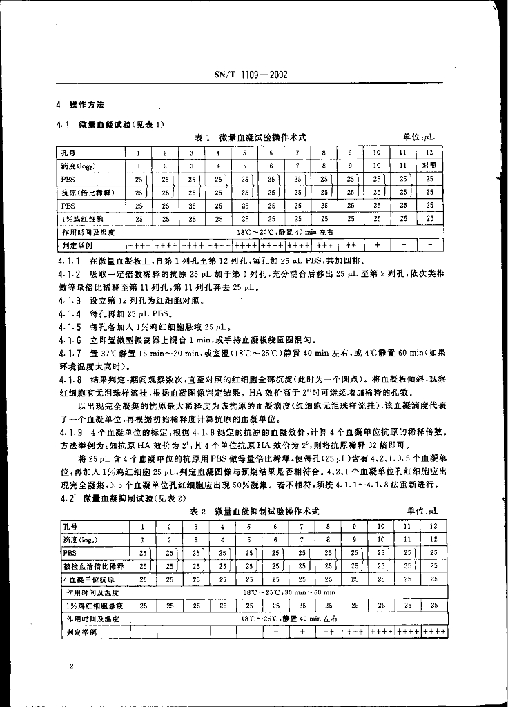 SN/T 1109-2002 新城疫微量红细胞凝集抑制试验操作规程