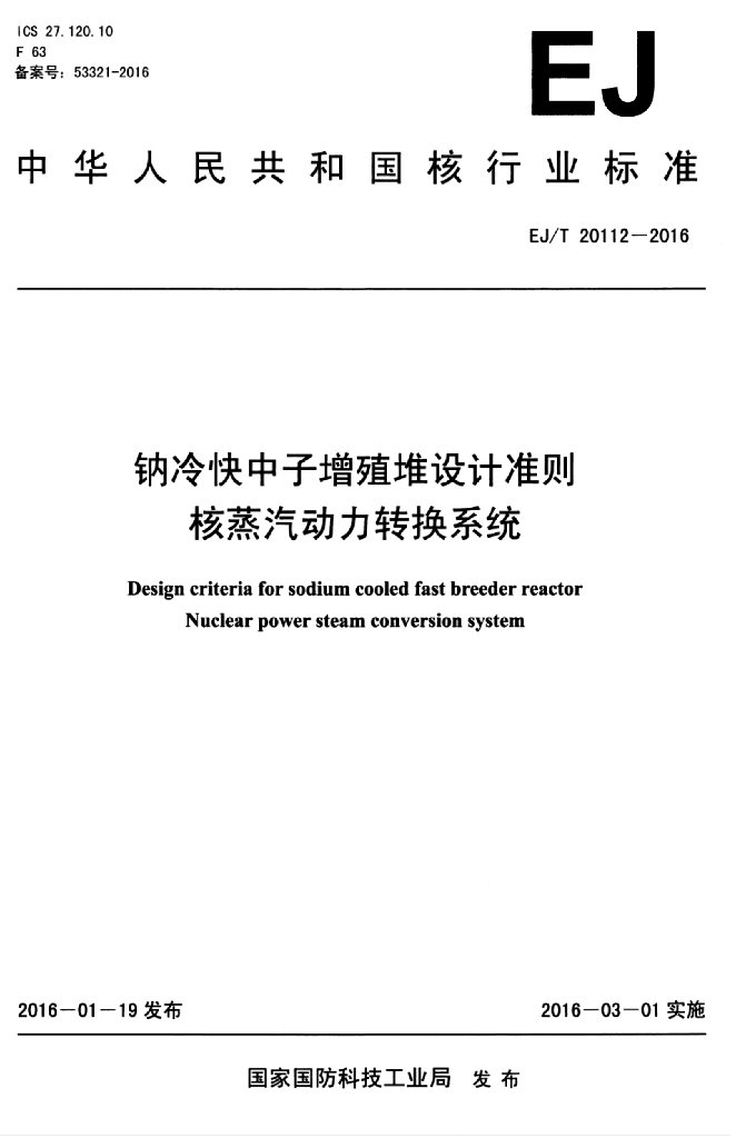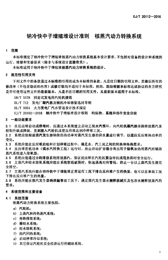 EJ/T 20112-2016 钠冷快中子增殖堆设计准则 核蒸汽动力转换系统