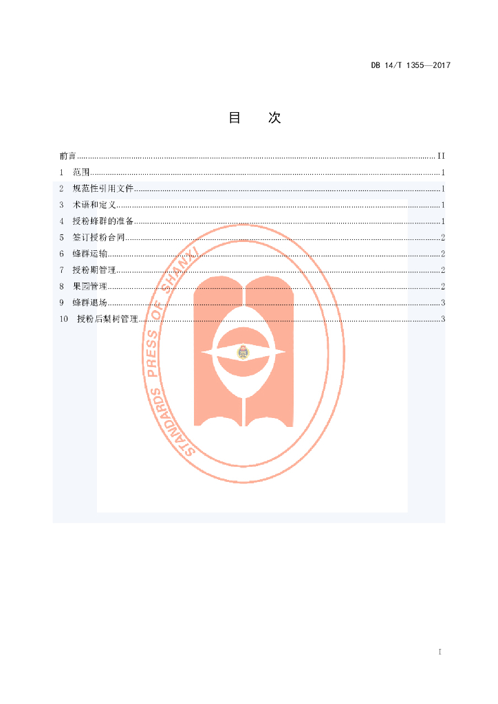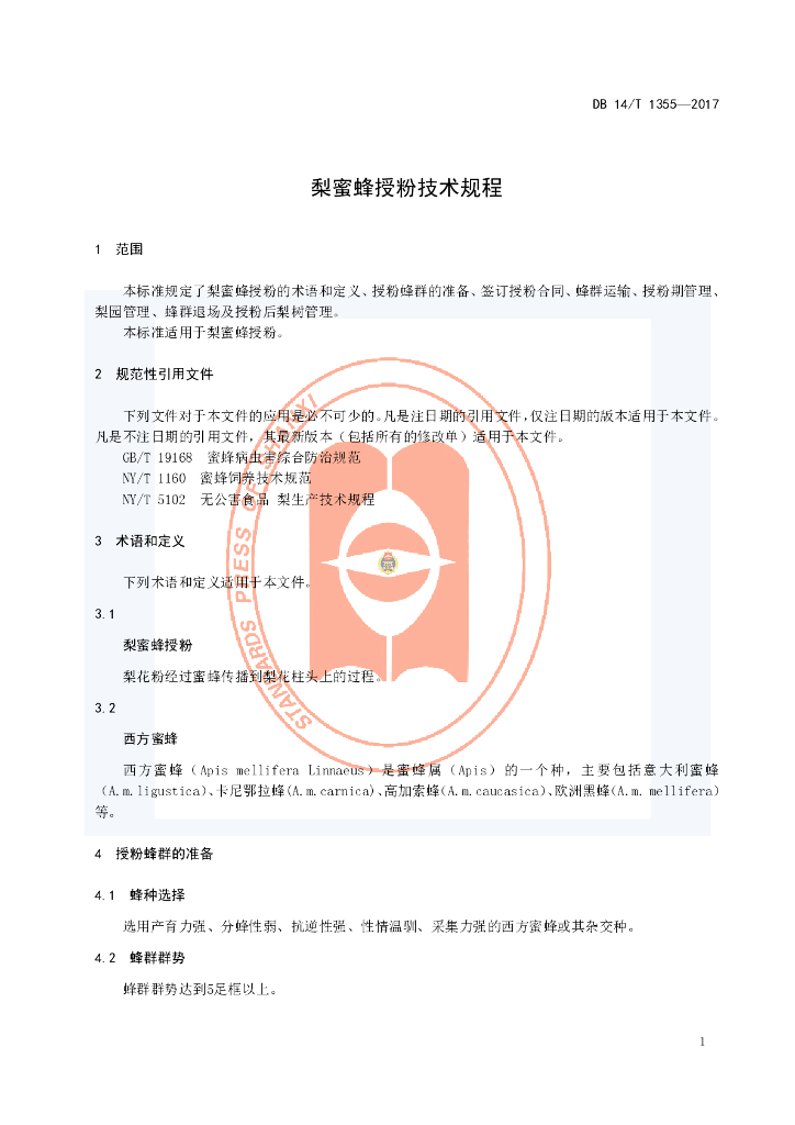 DB14/T 1355-2017 梨蜜蜂授粉技术规程