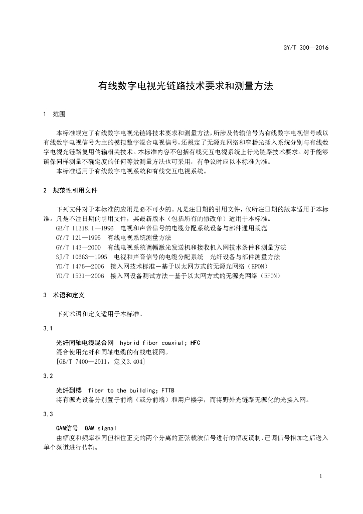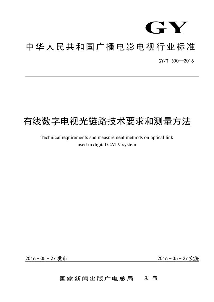 GY/T 300-2016 有线数字电视光链路技术要求和测量方法