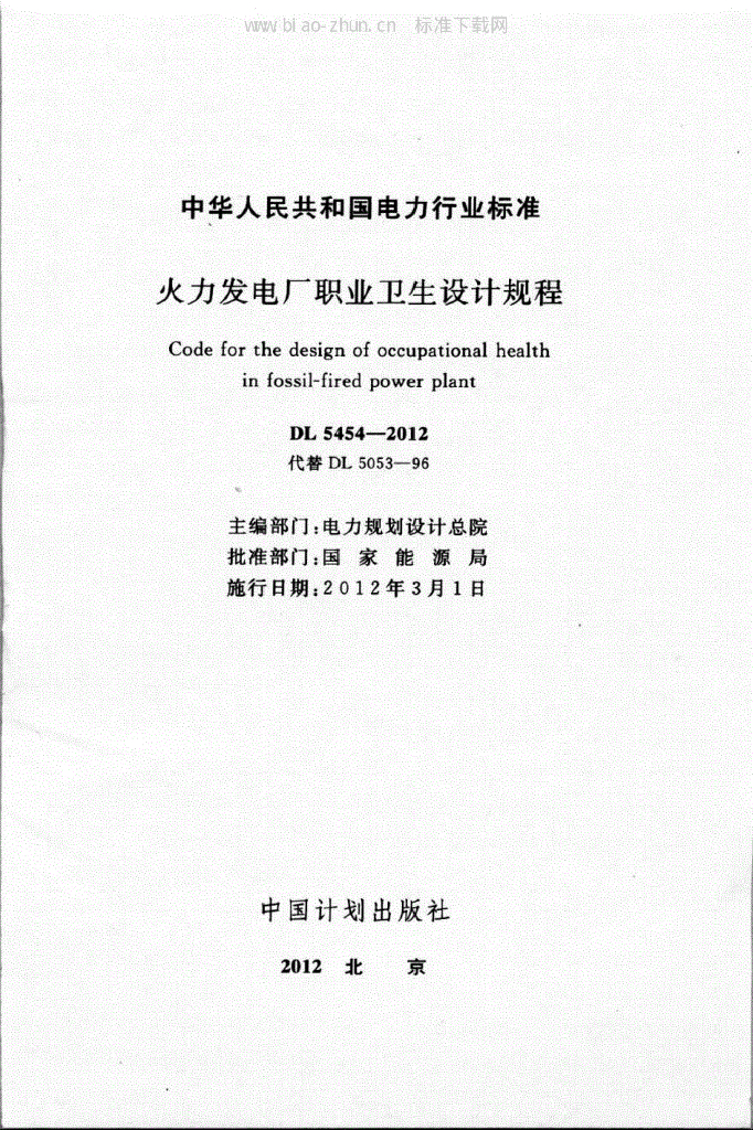 DL 5454-2012 火力发电厂职业卫生设计规程