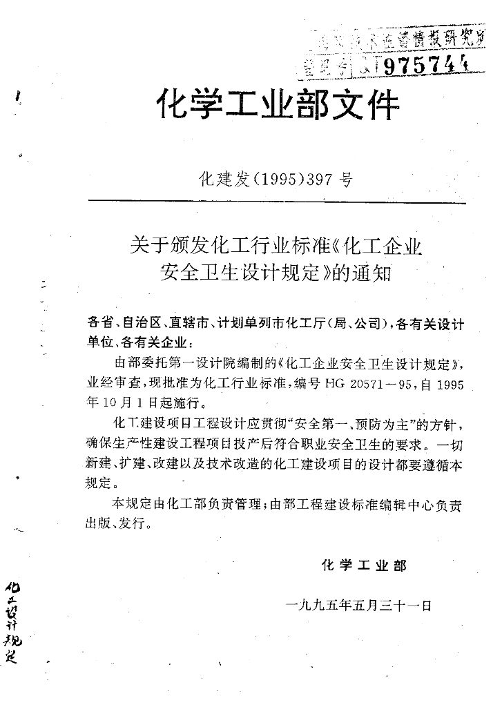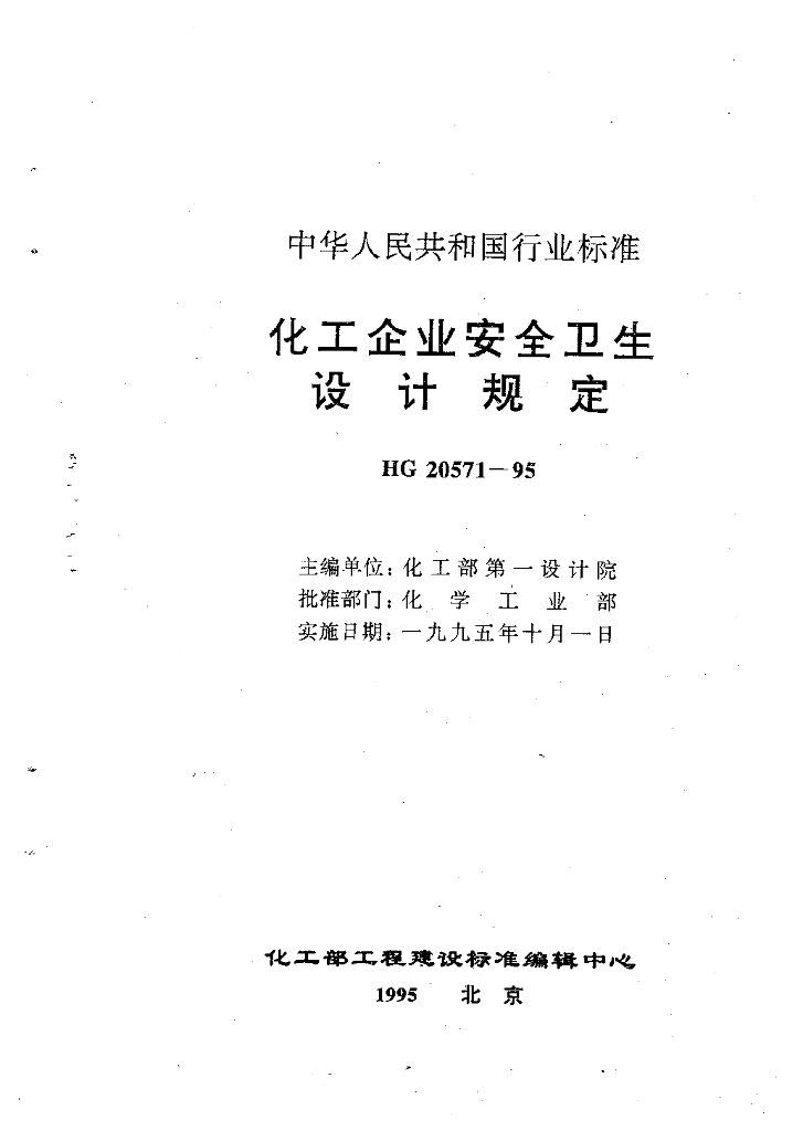 HG 20571-1995 化工企业安全卫生设计规定